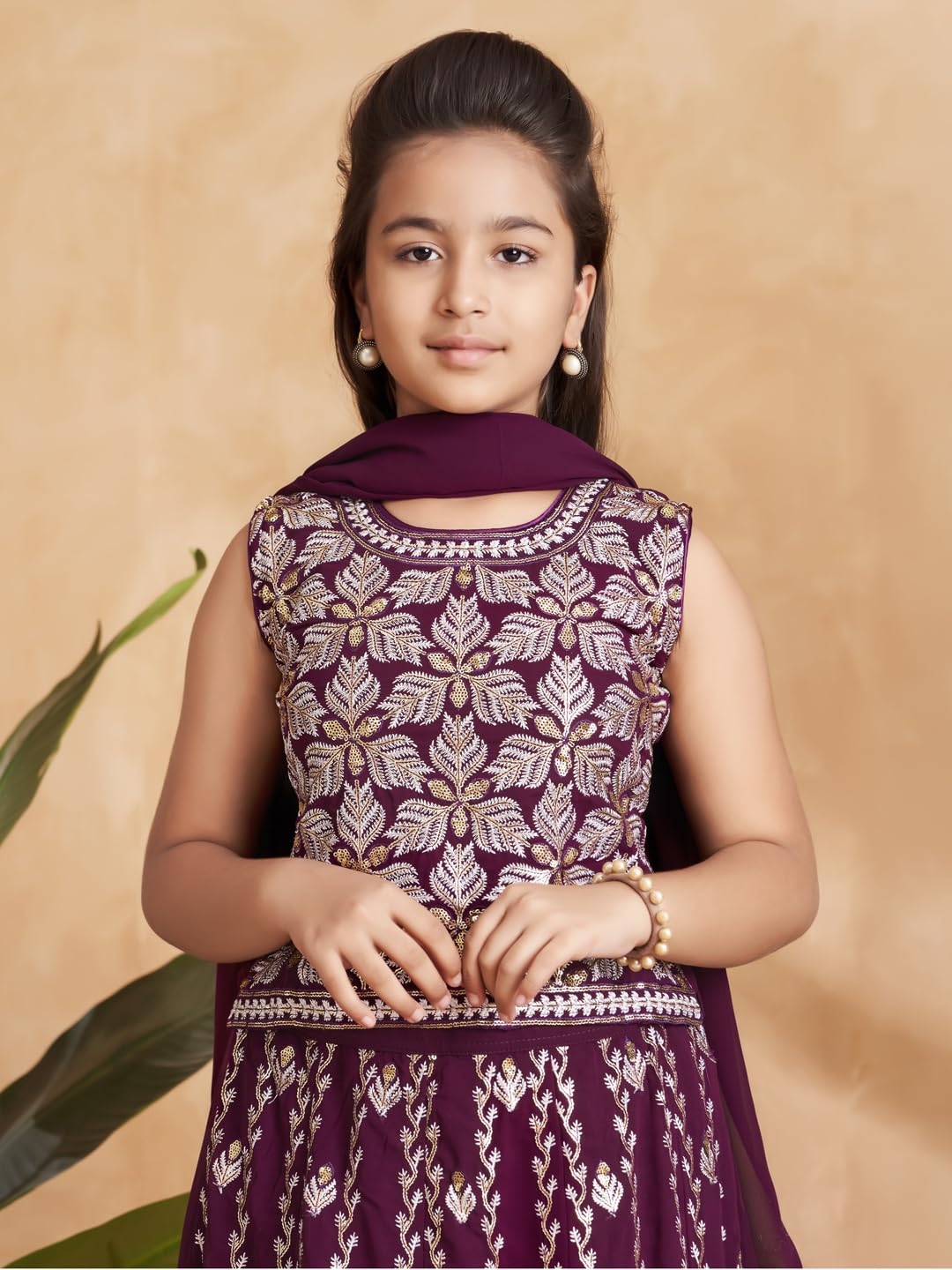 Aarika Girls Ethnic Wear Purple Colour Sequin Thread Embroidery Lehenga Choli Set With Dupatta-(4-10 Years)-(LCH-MC-1489-WINE-28)