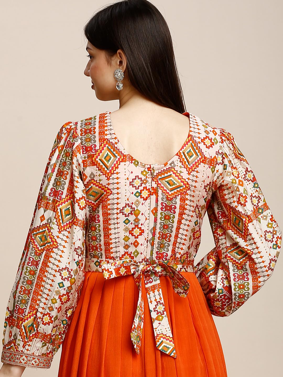 M/S PREM CRAFTS Women’s American Silk Sequence Embroidery Long Anarkali Kurti (Gown) with Dupatta (Orange-XXL)