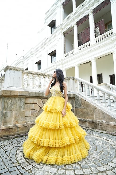 Roy Creation Yellow Tiered Evening Dress | Hand Embroidered Silk Bodice with Sequins & Cutdana | Net Layered Flare | Designer Indo Western Outfit | at-tude Design₹14,500.00 Original price was: ₹14,500.00.₹9,999.00Current price is: ₹9,999.00.Select options