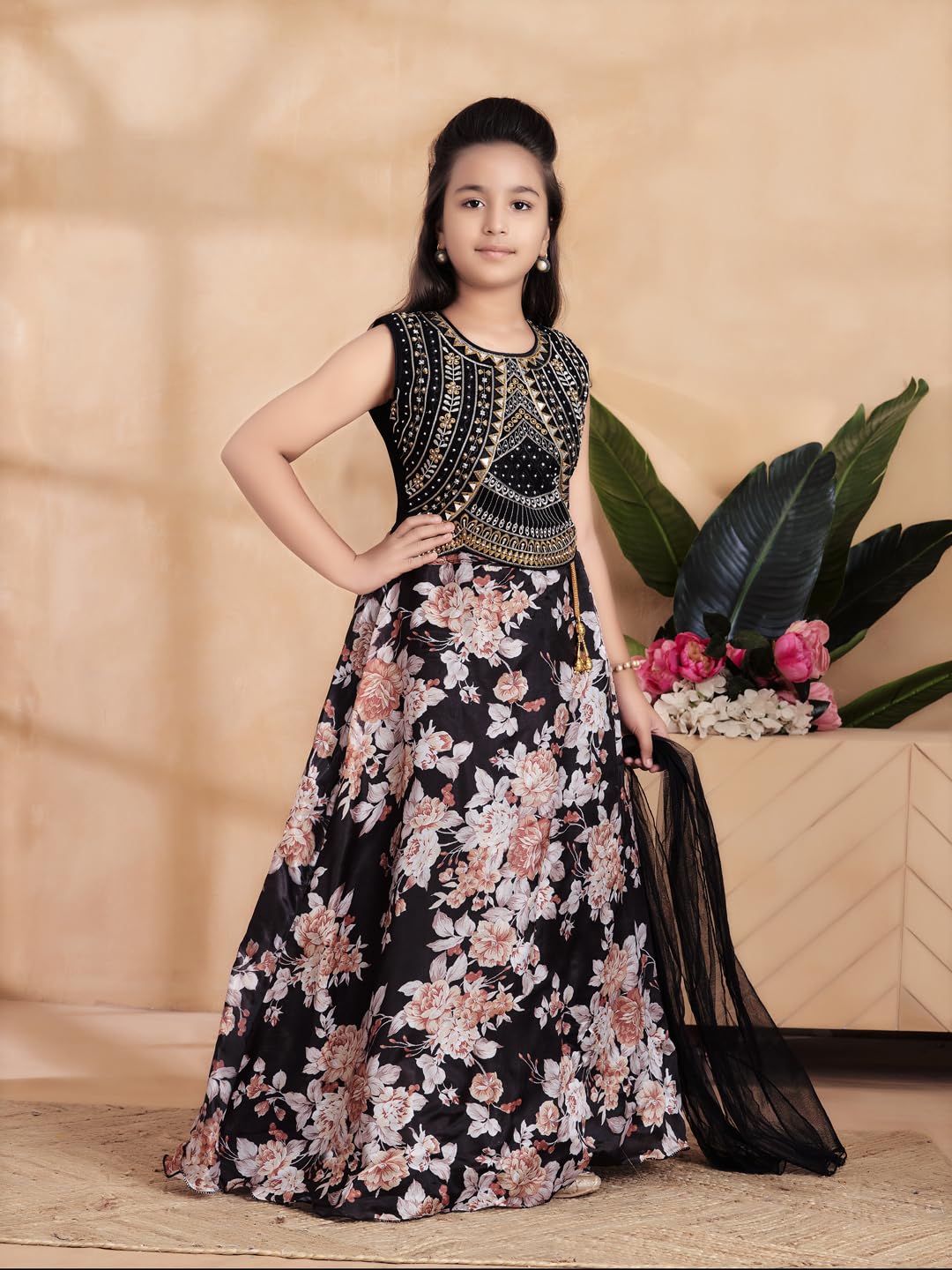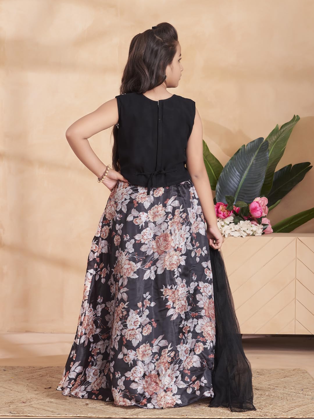 Aarika Girls Ethnic Wear Black Colour Floral Print/Embroidery Lehenga Choli Set With Dupatta-(4-10 Years)-(LCH-MC-01663-BLACK-28)