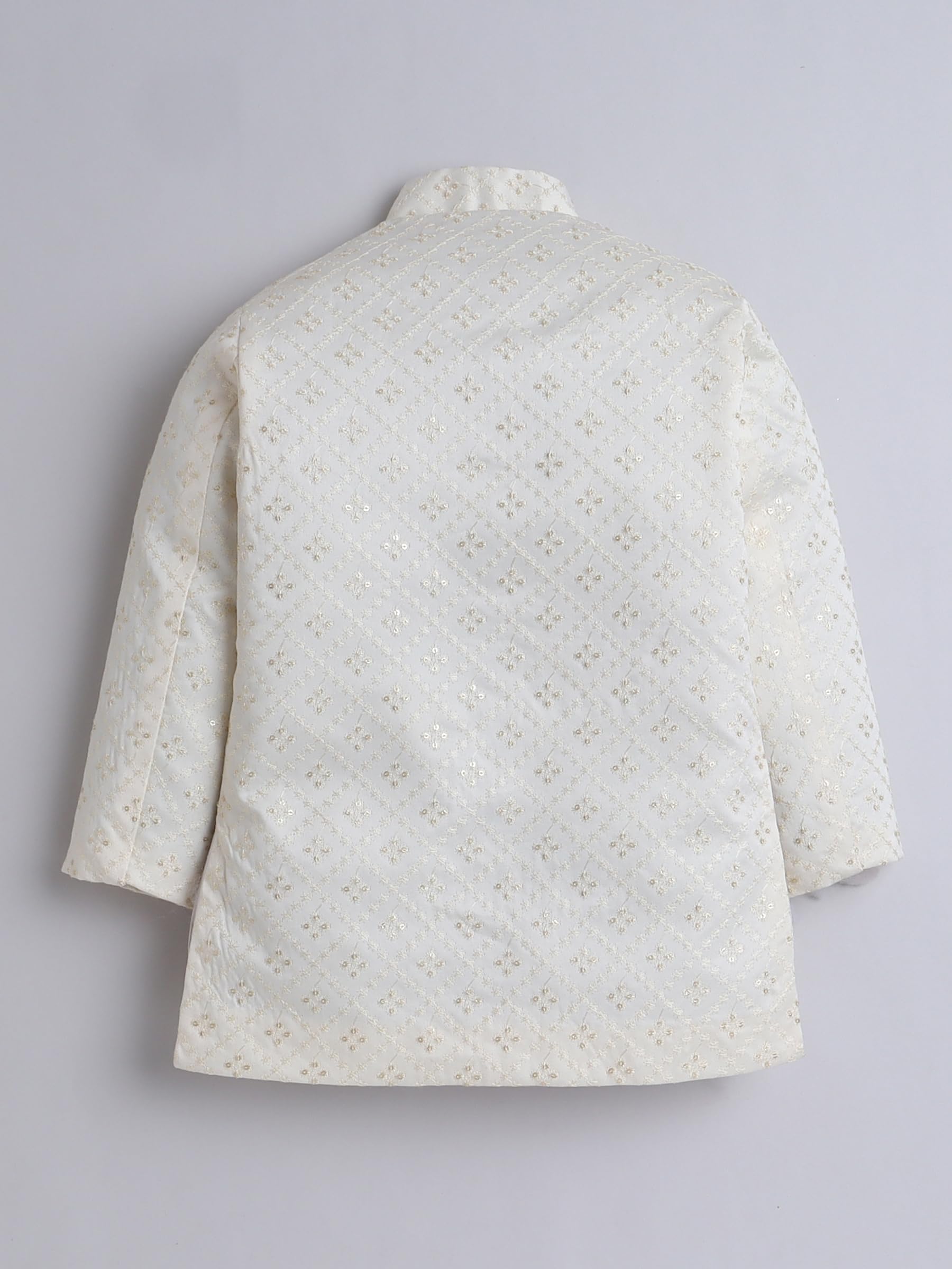 AHHAAAA Boy’s Cotton 2 Piece Indo-Western Set/Kids Ethnic Wear Jaquard Sherwani, Indian wear – Ideal for any Festivals and Cultural Occasion|Beige, 7-8 Years|