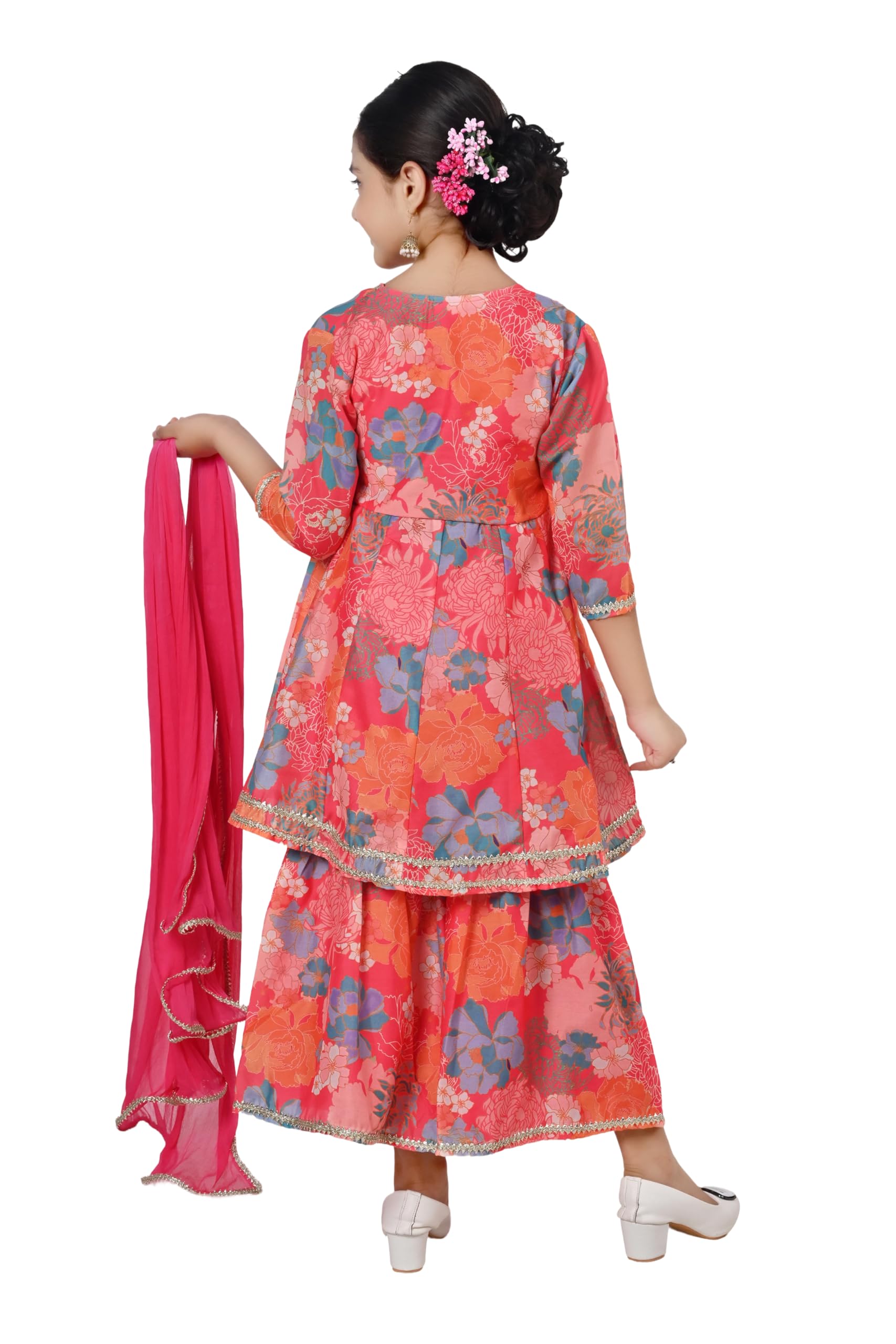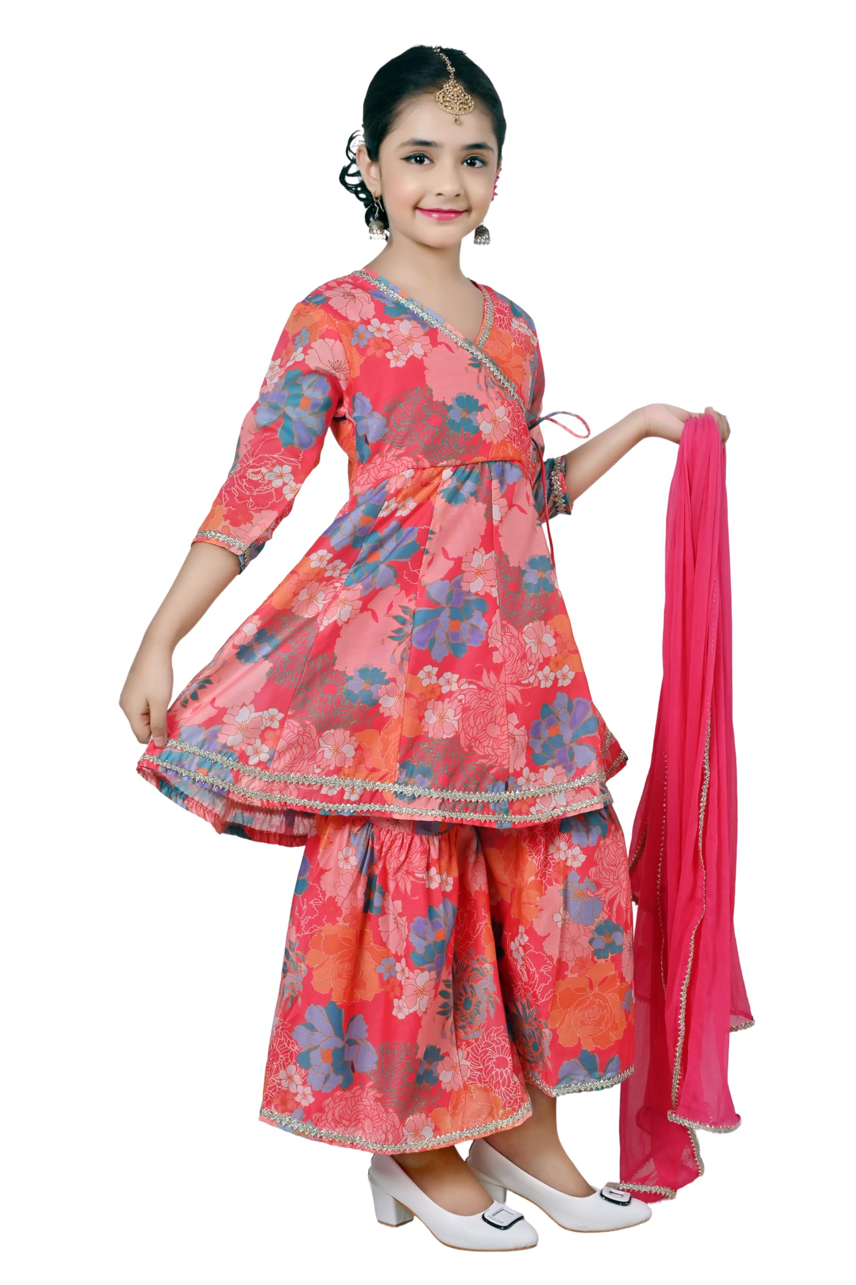 Arshia Fashions Floral Printed Angrakha Style Gotta Patti Cotton Kurta with Sharara & With Dupatta | All Occasion & Festivals Salwar Suit Set