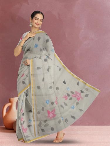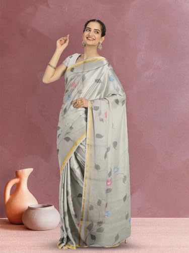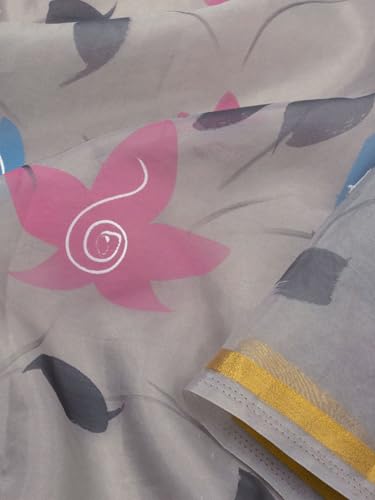 Avishya Exclusive Hand Painted Viscose Pure Organza Silk Saree | Casual and Modern Leaf Printed Saree for Women | Designer Saree with Unstitched Blouse Piece (Grey)