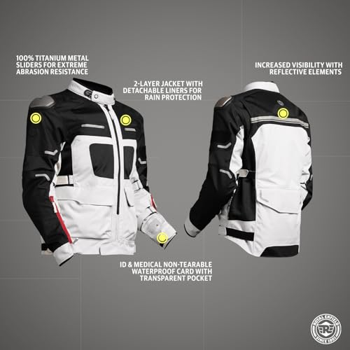 - Other features:The jacket features a TruDry waterproof pocket and increased visibility with reflective elements to enhance visibility of the rider in low light conditions. Multi-utility cargo pockets and a large zippered pocket add practicality. The titanium sliders add ease of movement & the cushioned comfort collar prevents chafing of the skin.