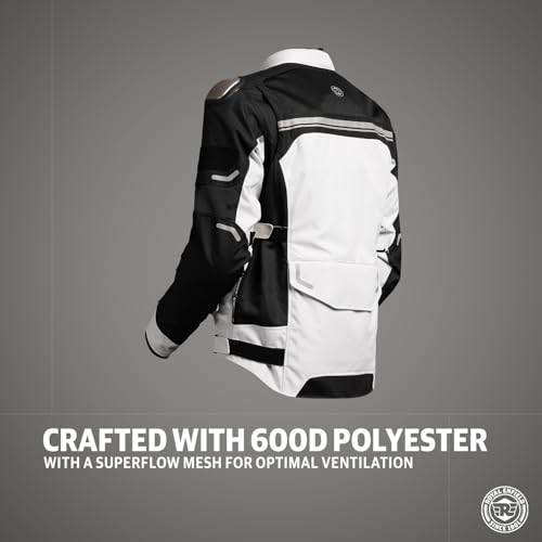 - Construction: Crafted from durable 600D polyester with a superflow mesh for optimal ventilation. Dual Sport riding jacket made high abrasion resistant polyester fabric.Weather protection: Standalone rain jacket (water resistance 8000MM) with reflectives, it can be can be worn outside or inside the jacket.