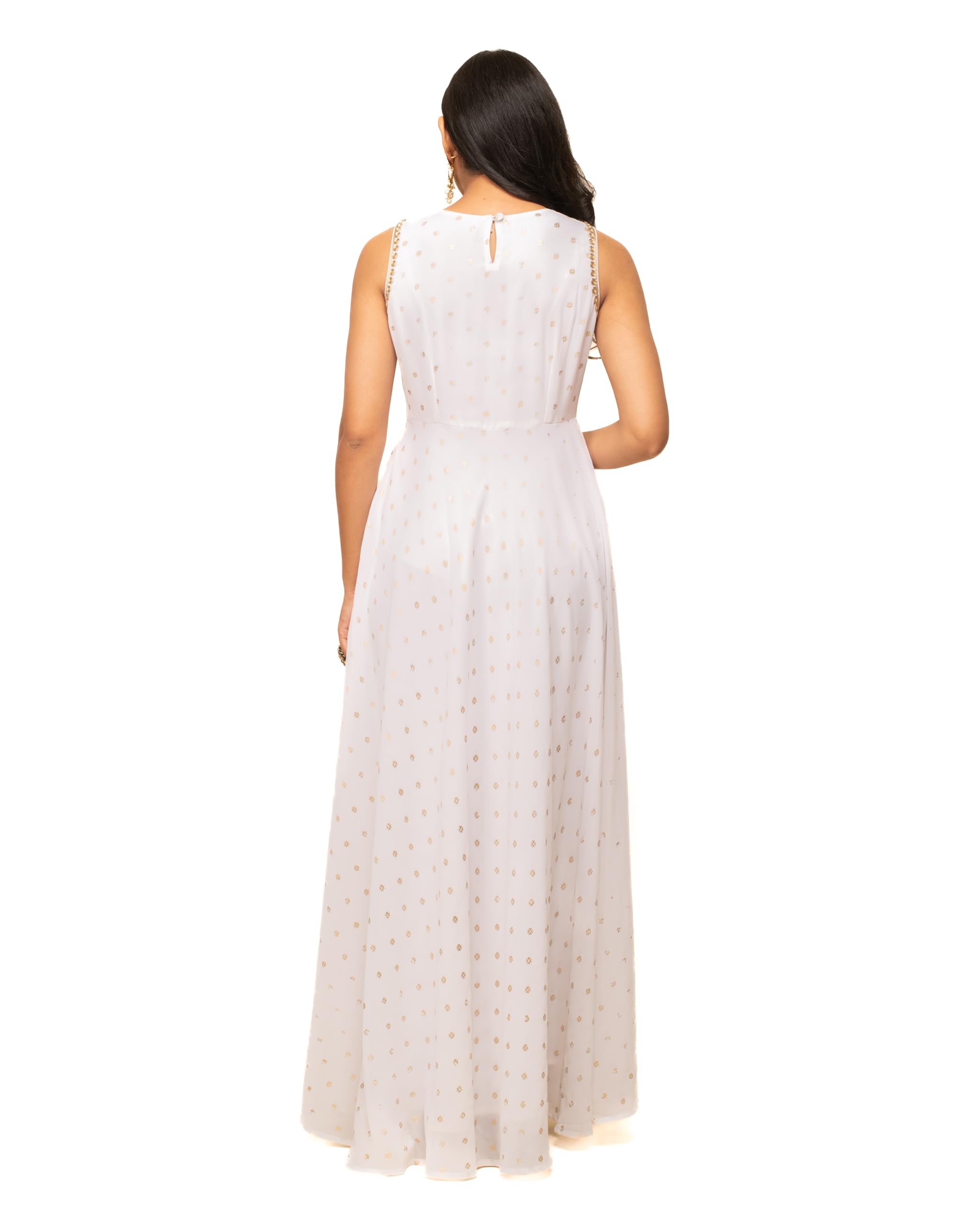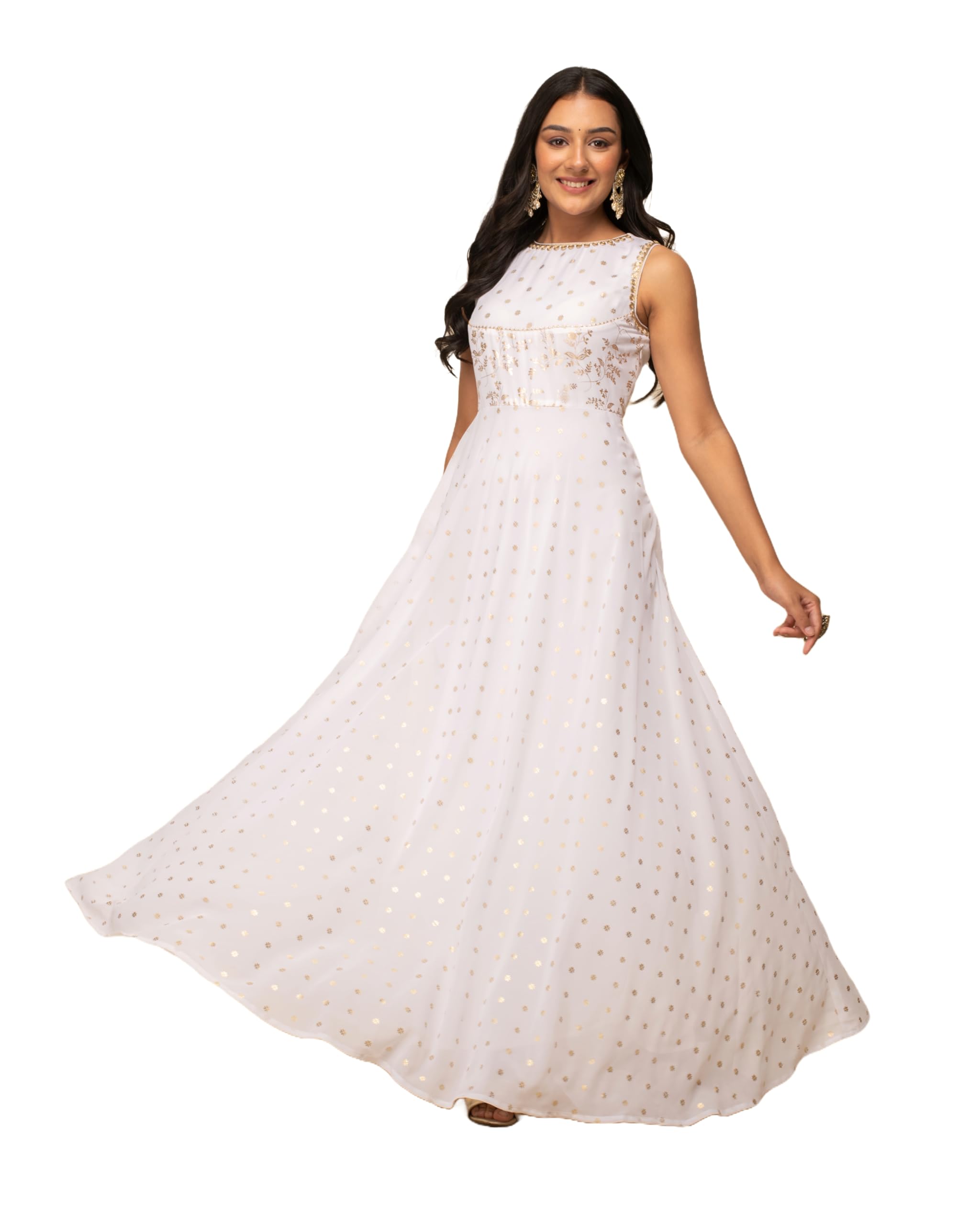 FIORRA Women’s White Georgette Printed Gown with Dupatta SET0126