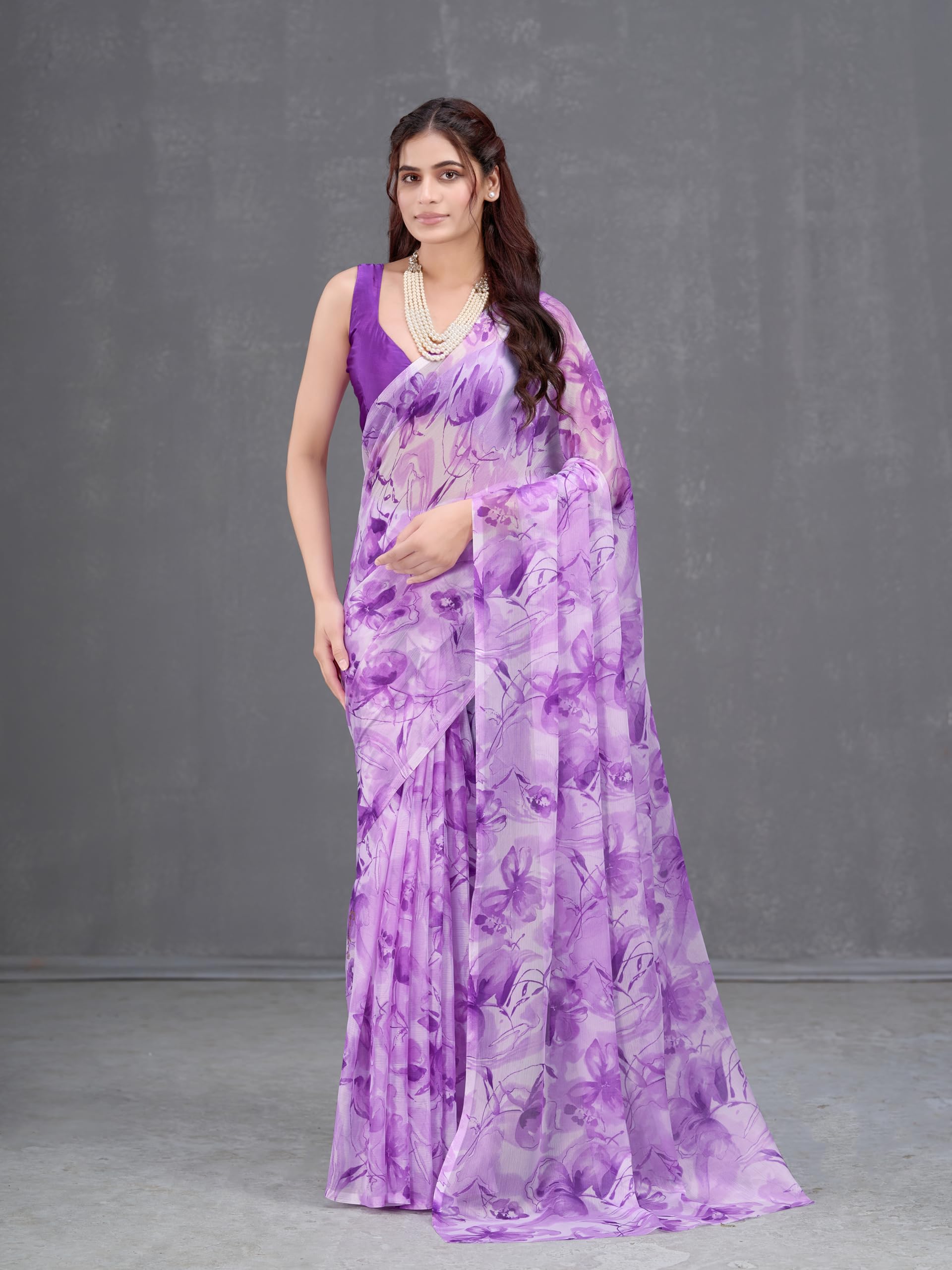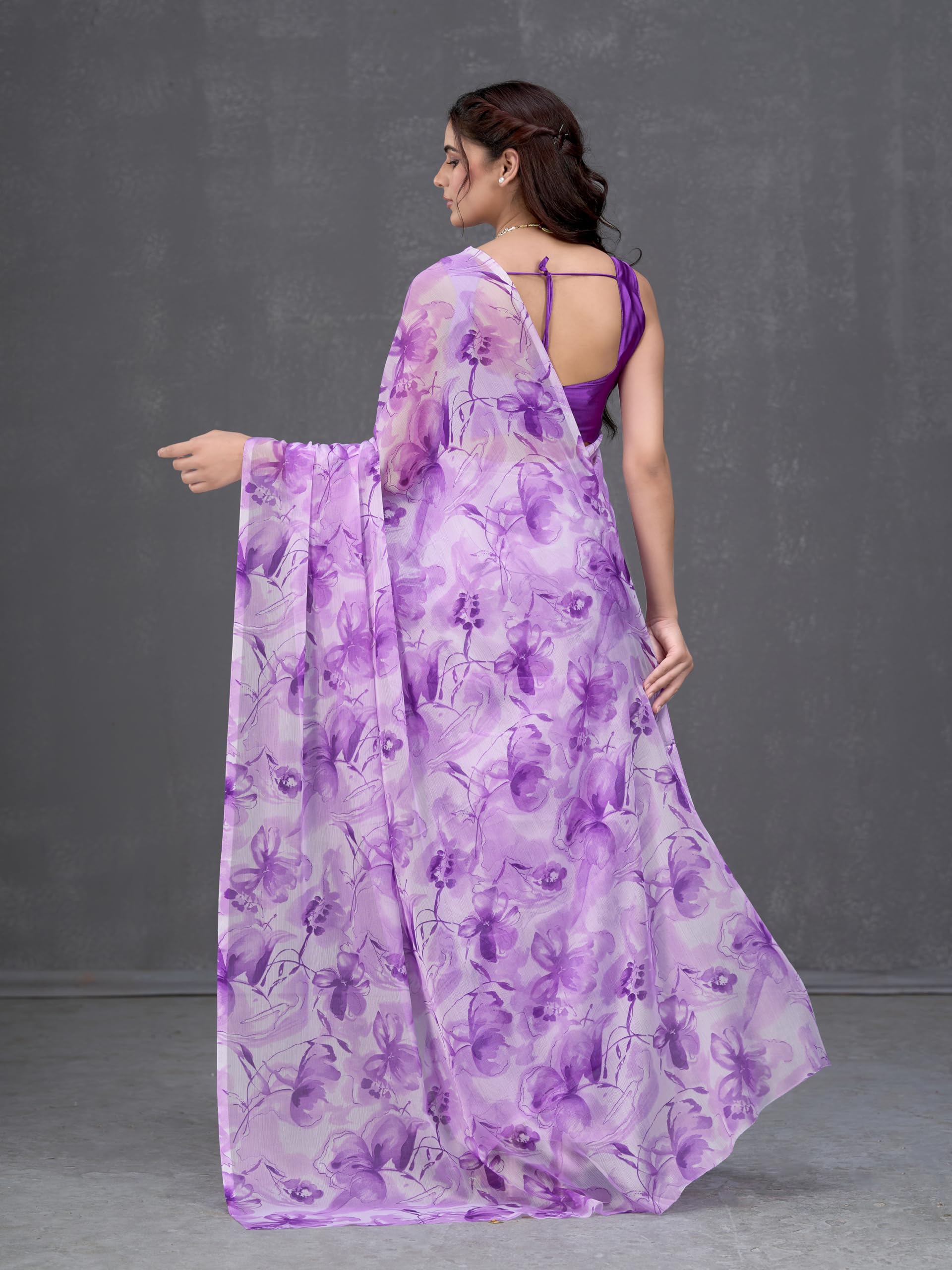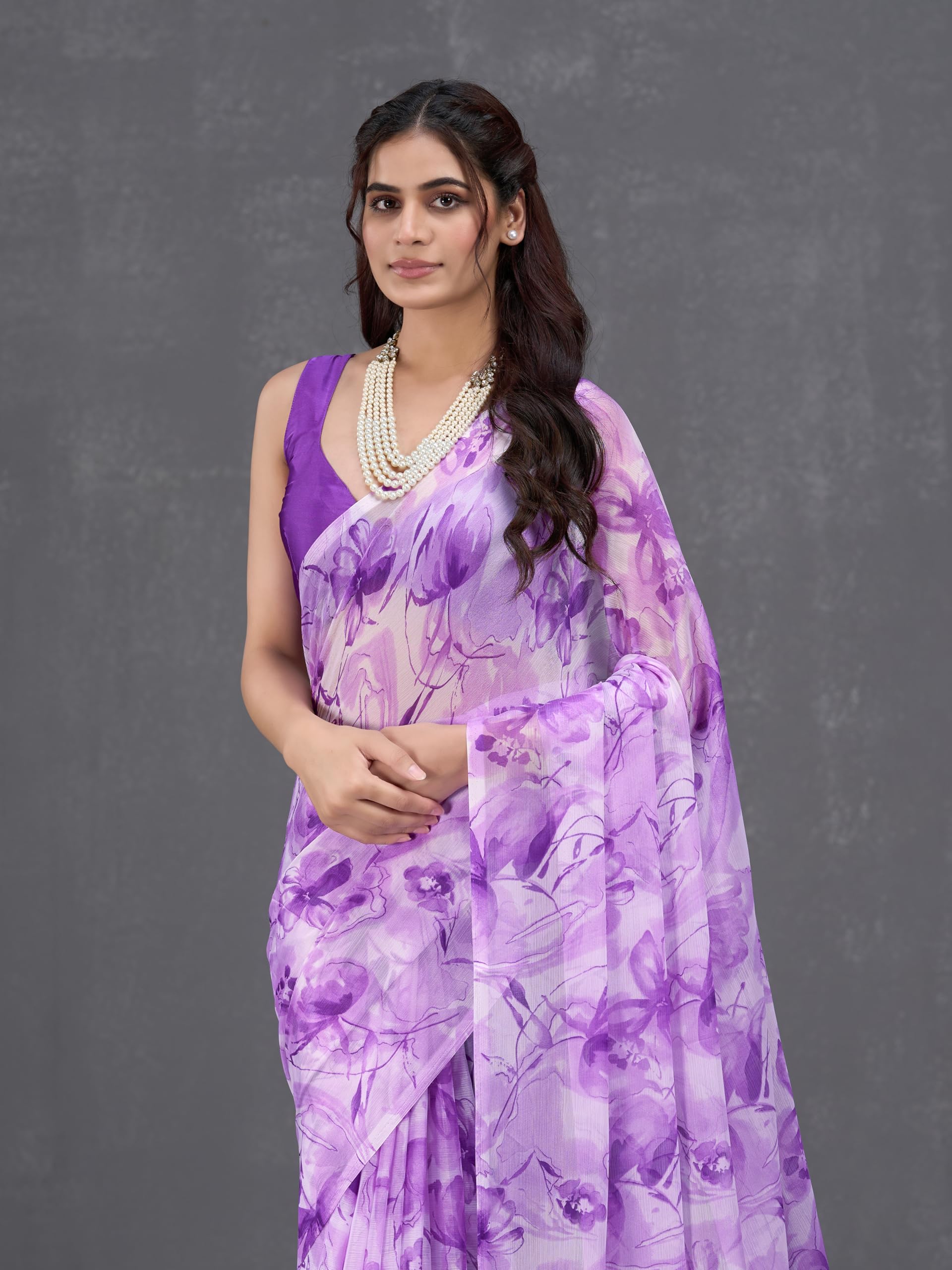 Garden Vareli Nara Chiffon All-Over Floral Print Saree With Blouse Piece 89155 – Violet