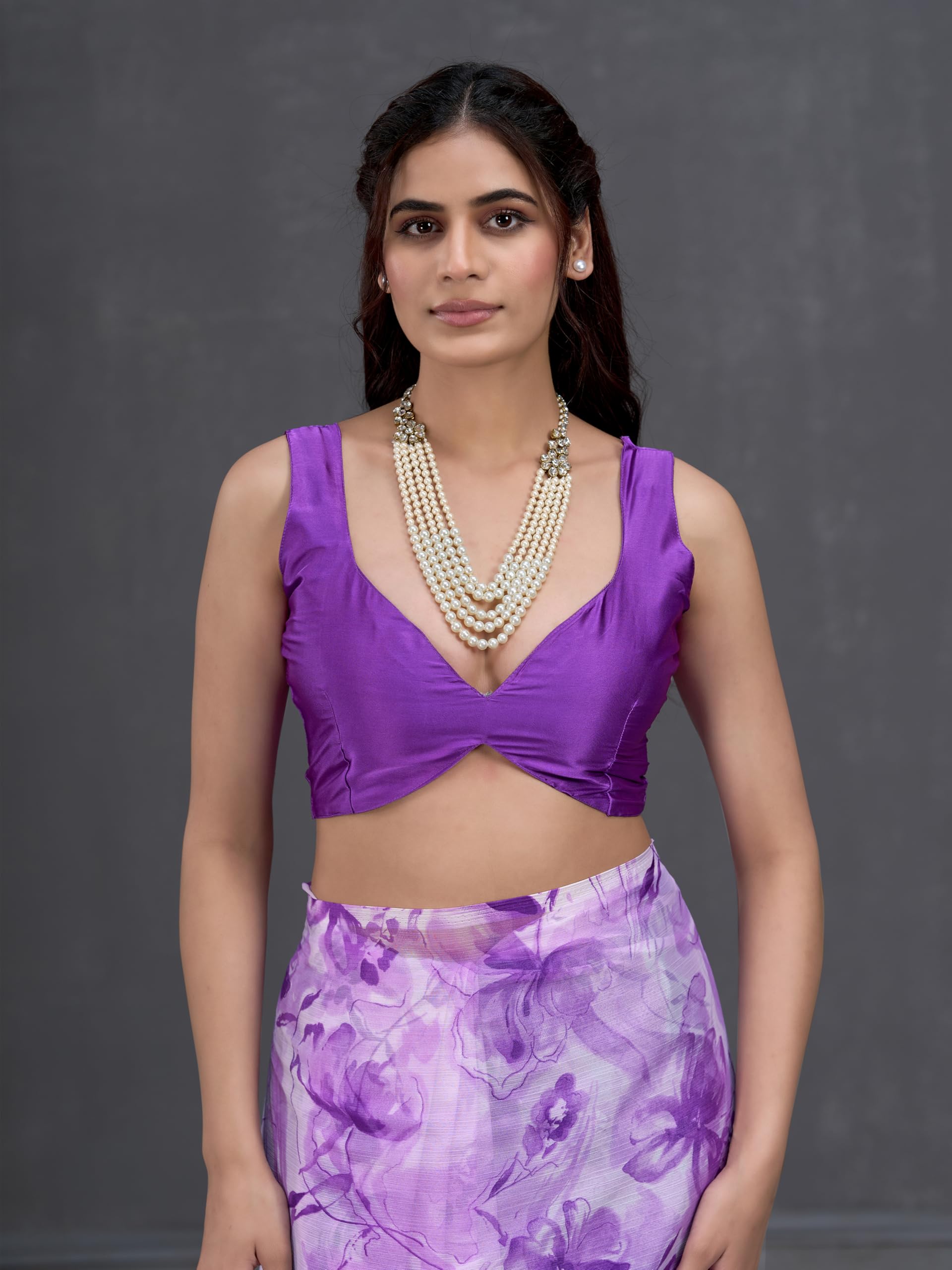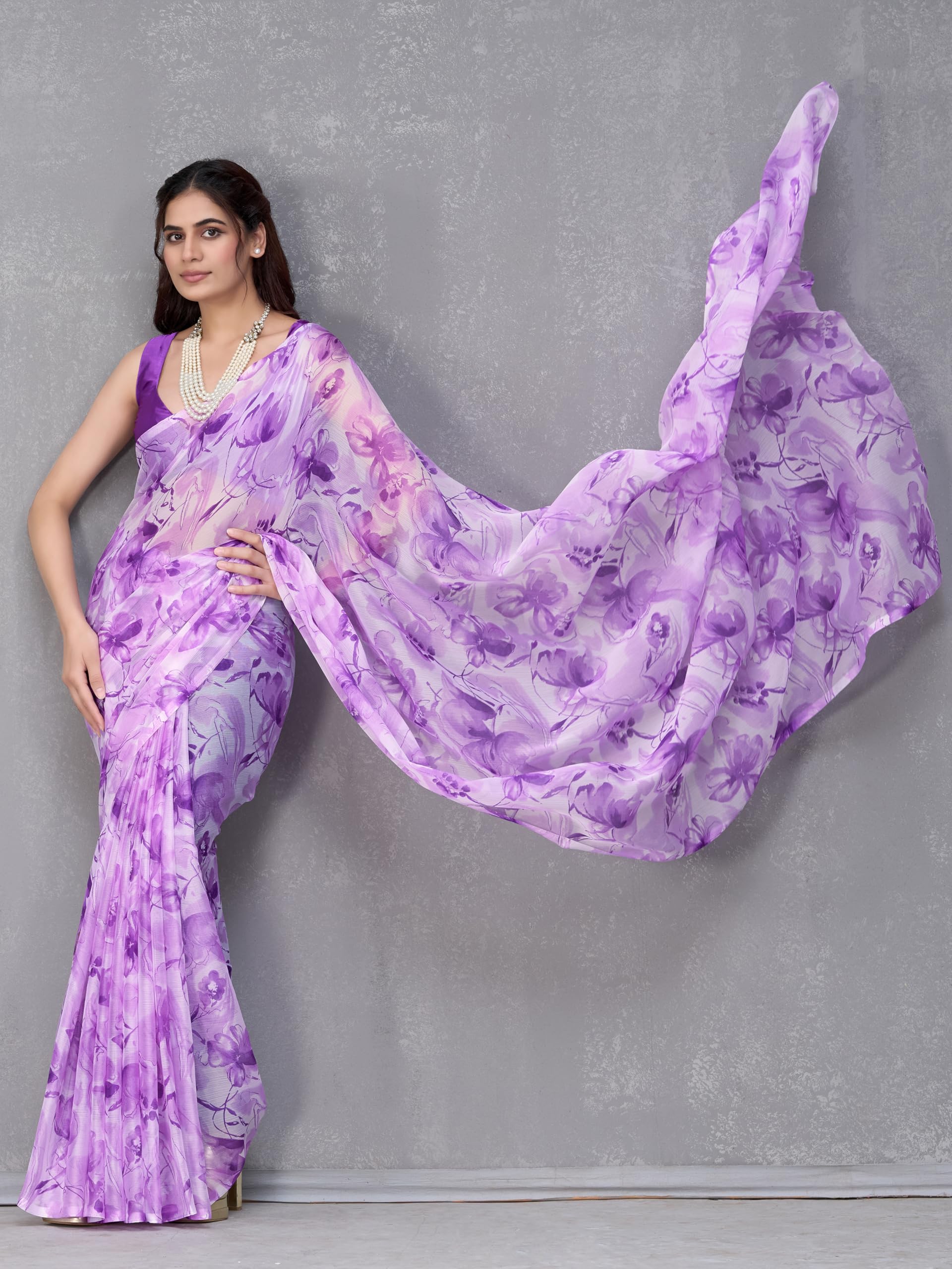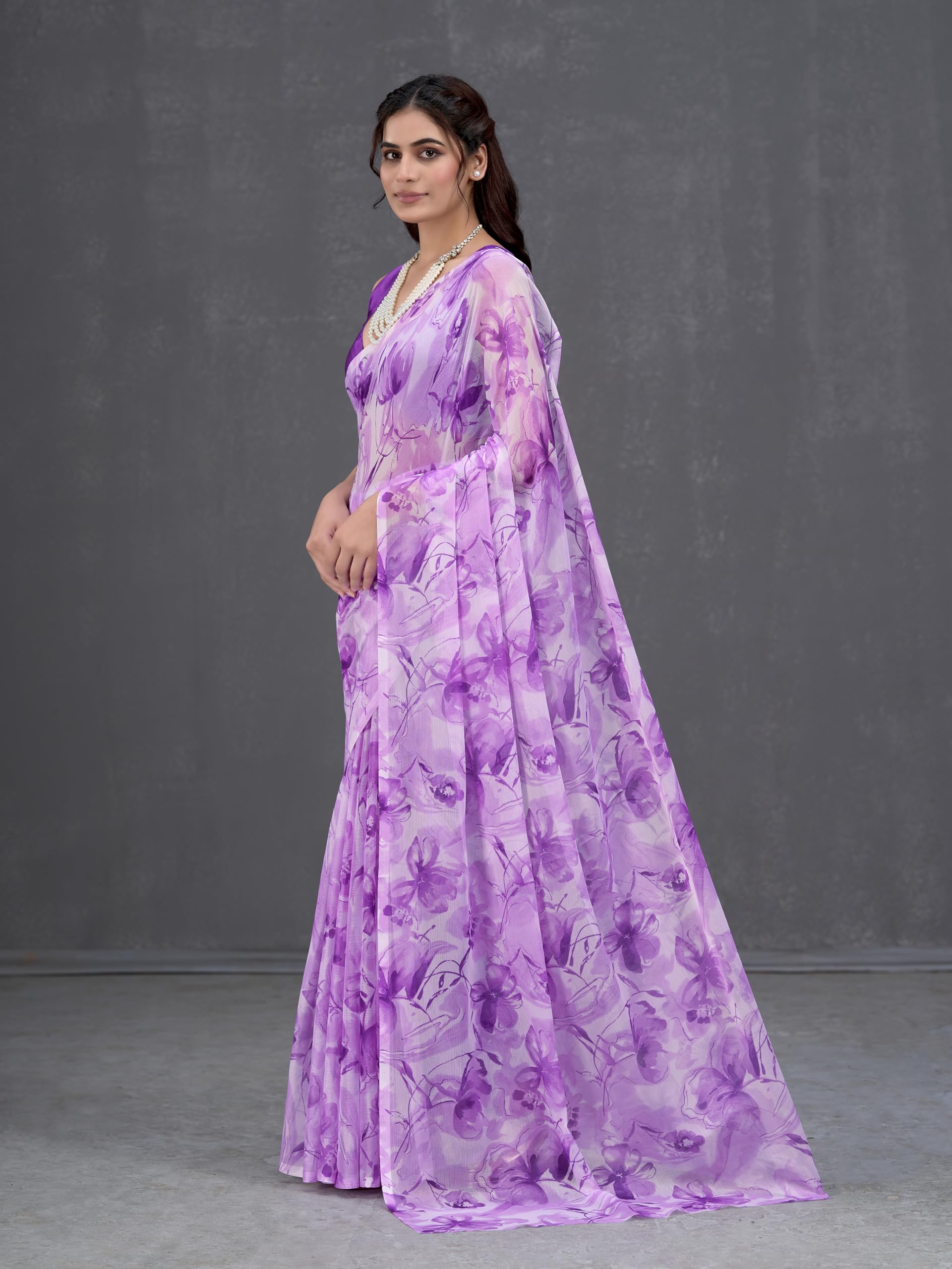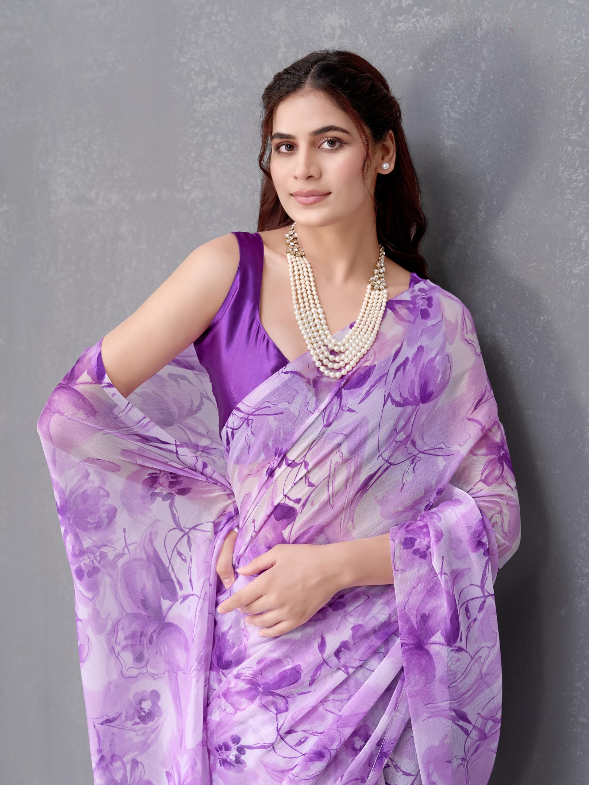 Garden Vareli Nara Chiffon All-Over Floral Print Saree With Blouse Piece 89155 – Violet