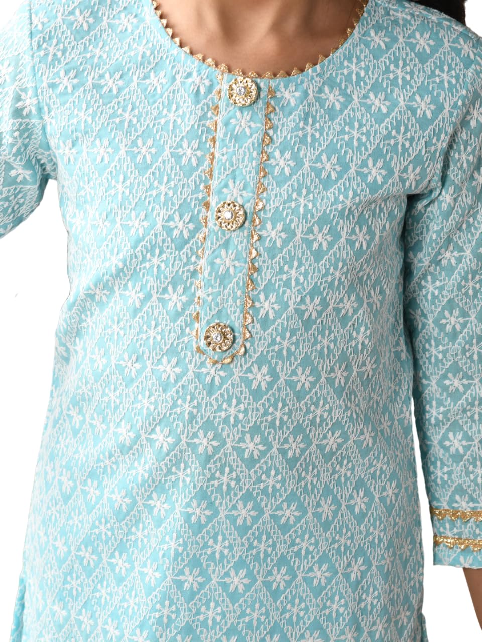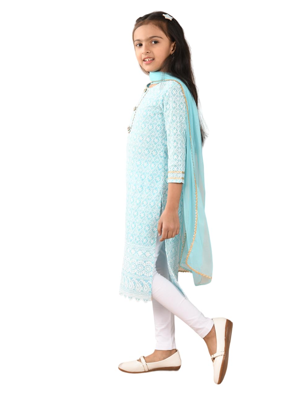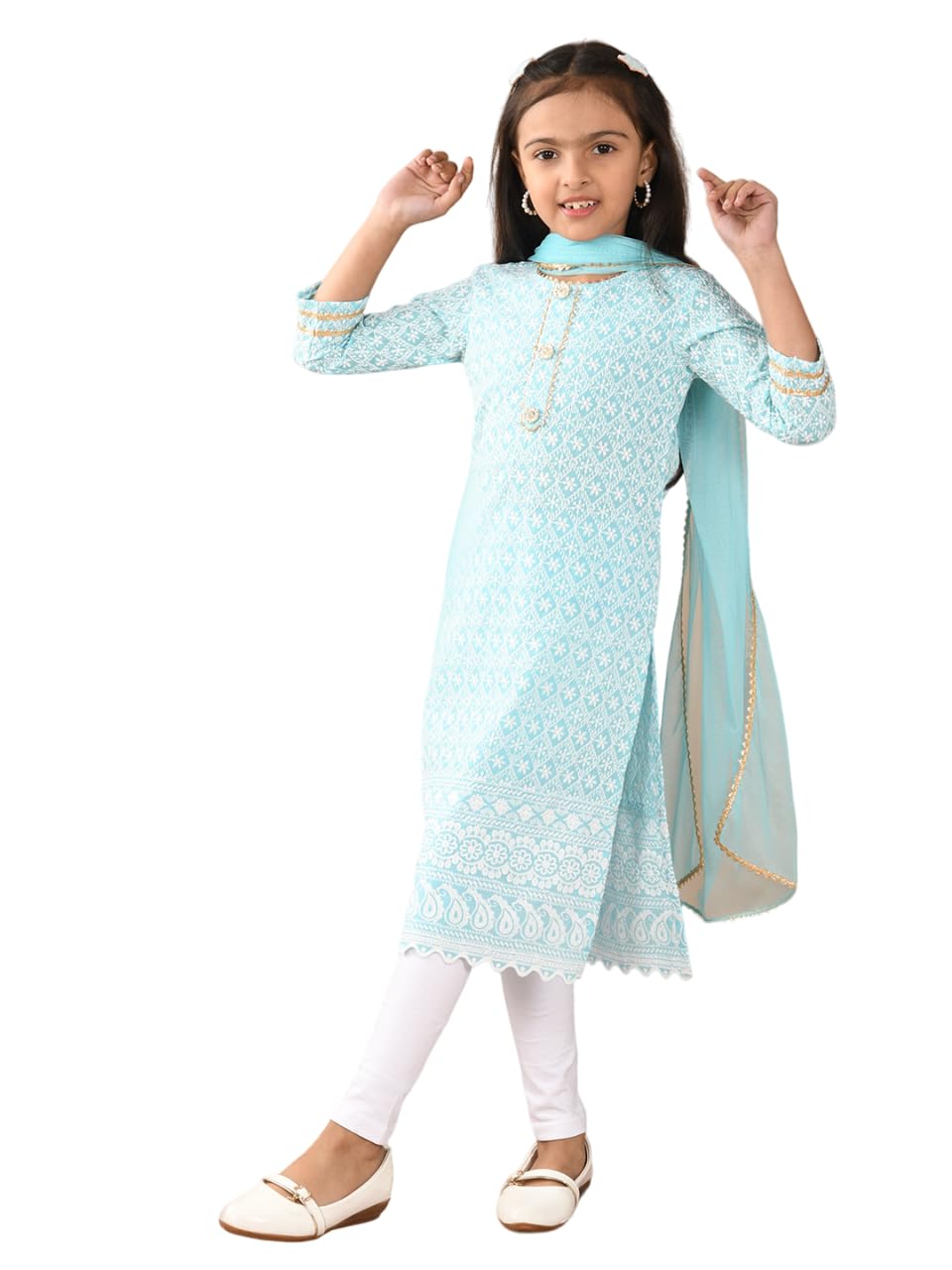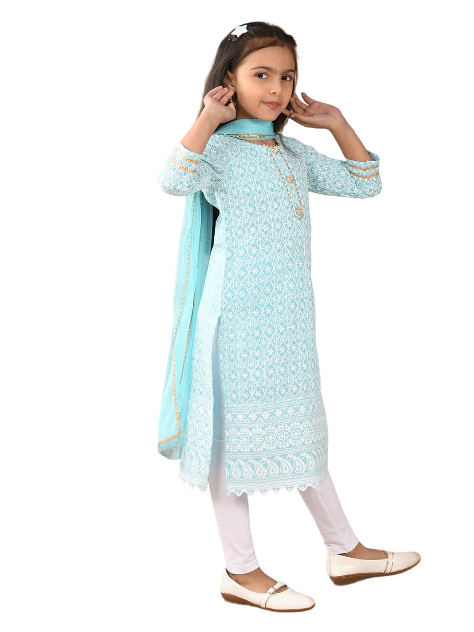 H L GARMENTS Girls Cotton Floral Kurti Set with Dupatta, Kids, 6-7 Years, Blue