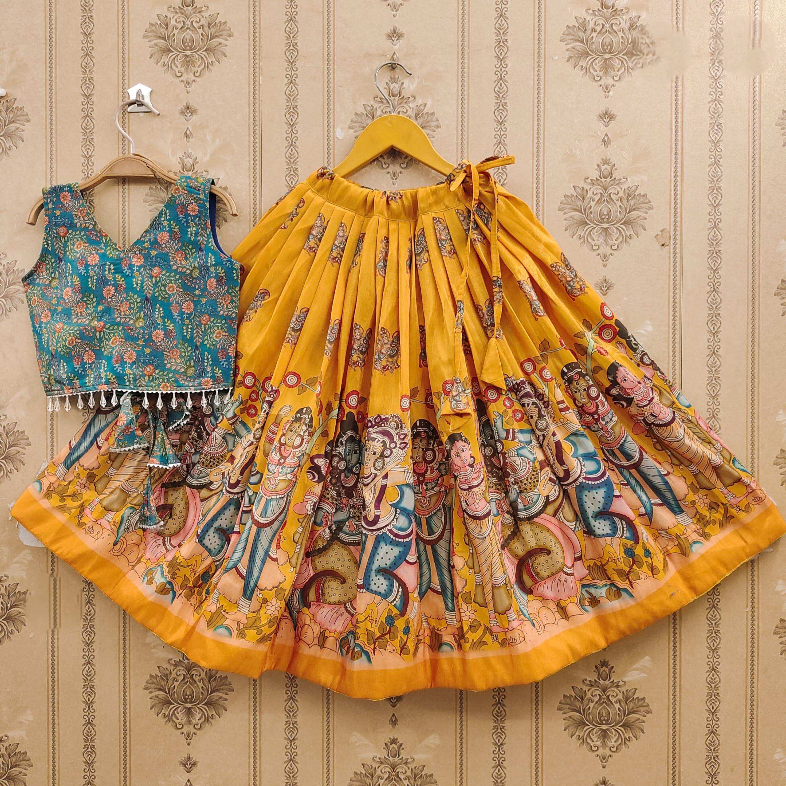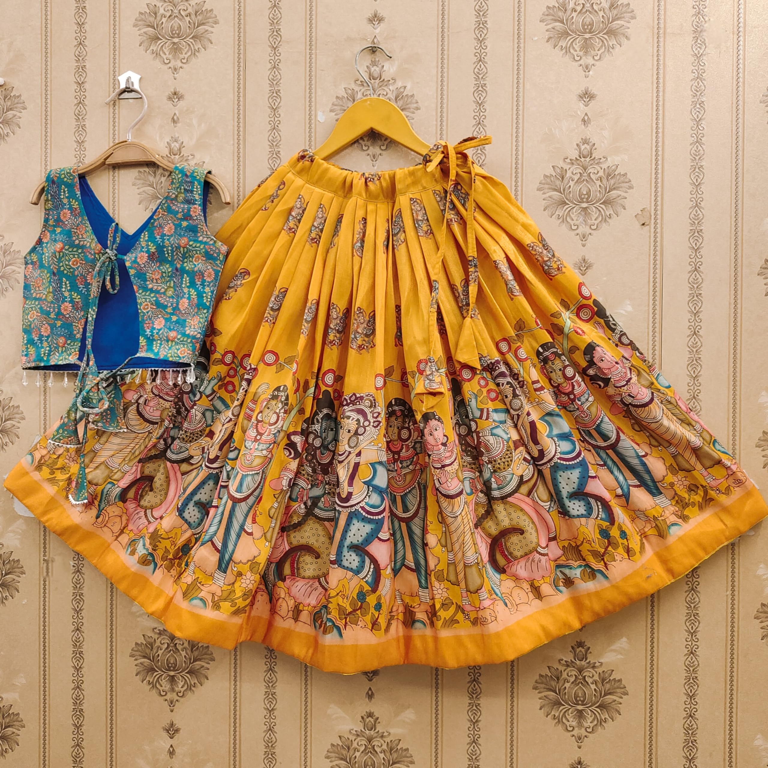 - Design: Kalamkari Mythological Print | Floral Blouse | Printed Dupatta