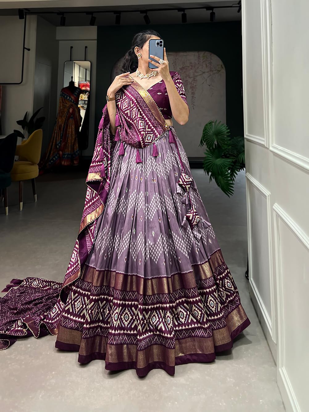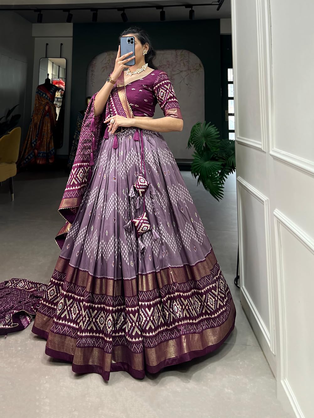 HETRANG CREATION Womens’ Wear Tussar Silk With Patola Printed Lehenga Choli With dupatta Set Women’s Wedding Special Tussar Silk Printed Lehenga Choli (SUNRISE-WINE)