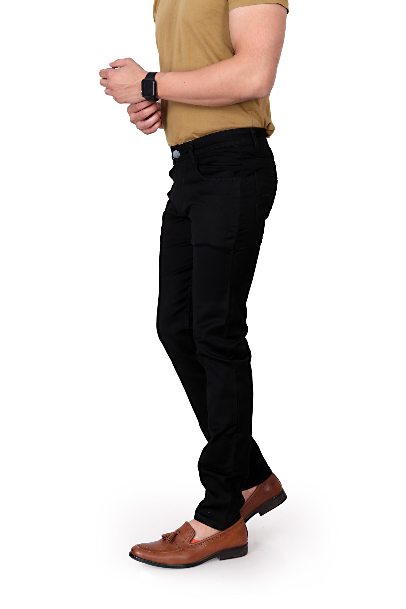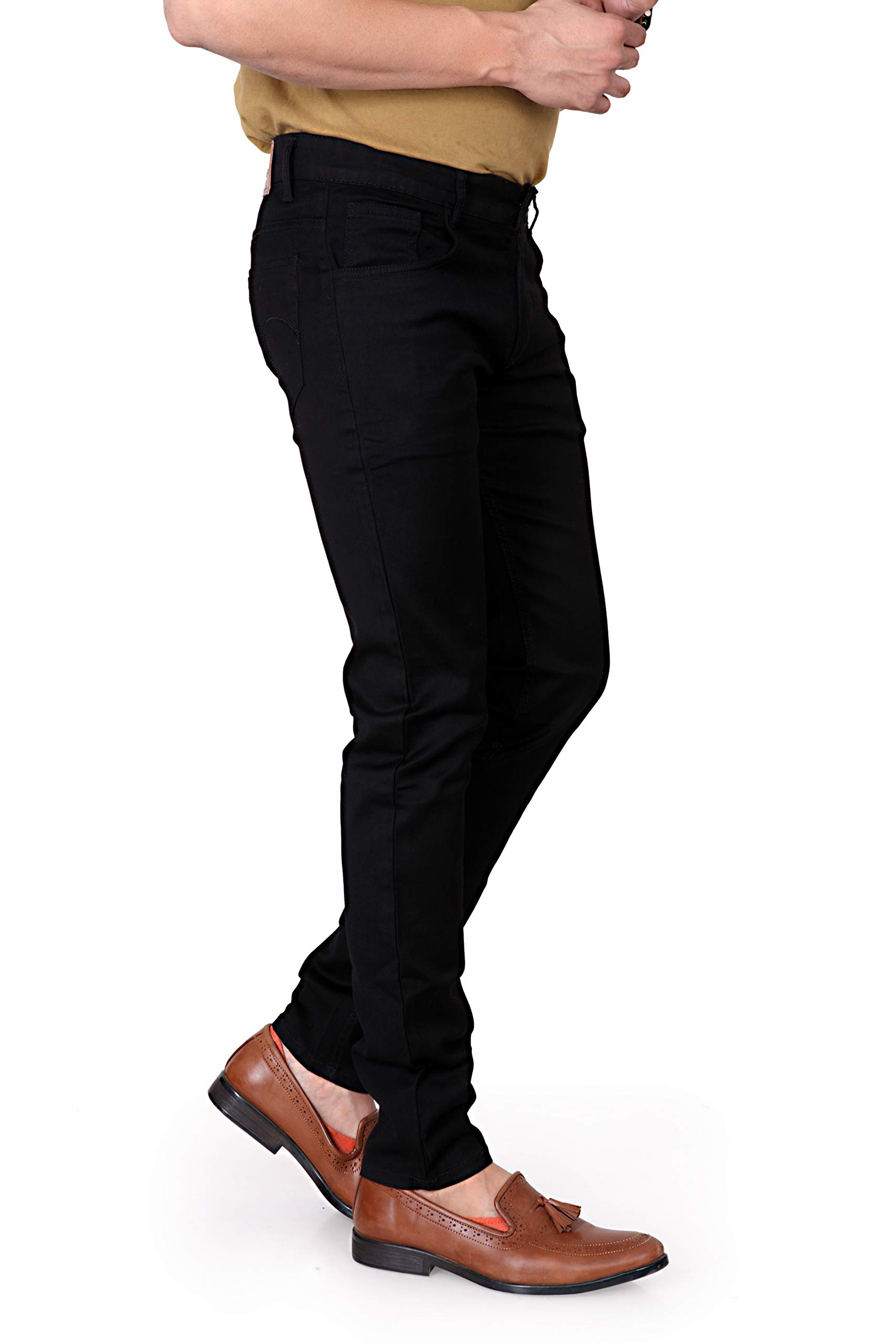 KARGEENS Slim Men’s Stretchable Low Rise Jeans Pant for Casual Stylish Cotton Blend Denim (k2103_Black_34)