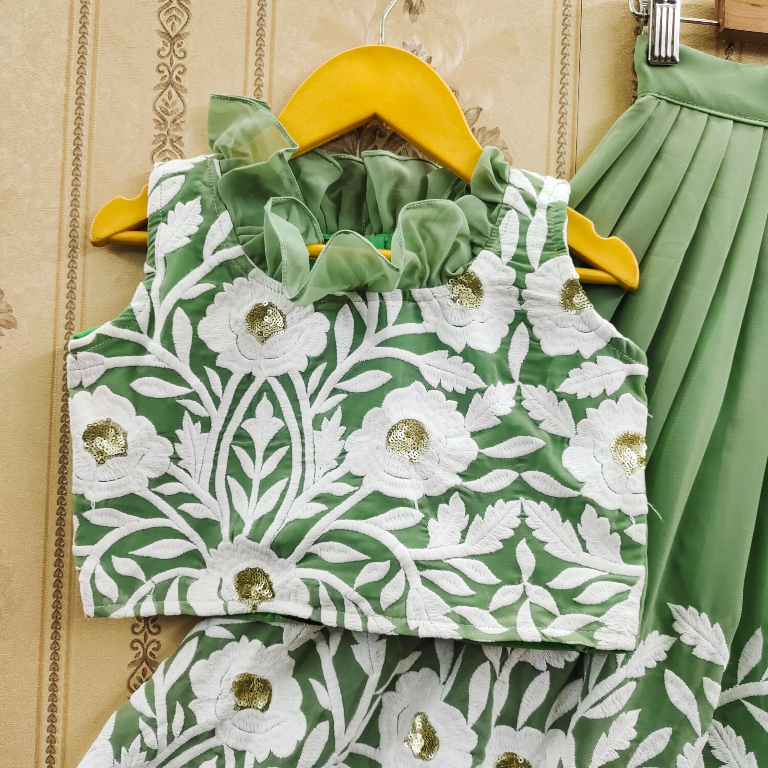 LAKAAE Girls Embroidered georgette Silk Full Stitched Lehenga Choli Set | Girls Ethnic Wear | Readymade Traditional Dress (6-7 Years, Pista)