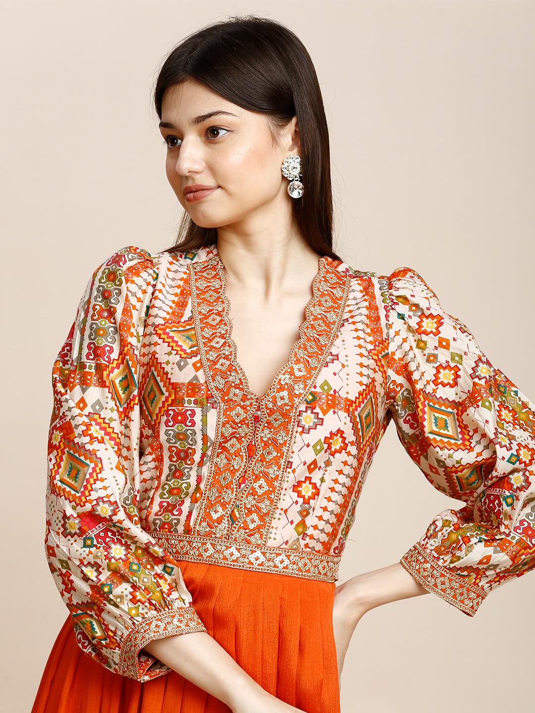 - Stand out from the rest with our latest designer Kurti: Crafted to embody the latest fashion trends, this solid Orange Colour Long Gown dress is designed to help you make a bold fashion statement. The latest design pattern highlights the colour of your choice, accentuating your style further. Elevate your look and make heads turn with this stunning Long Gown dress for women