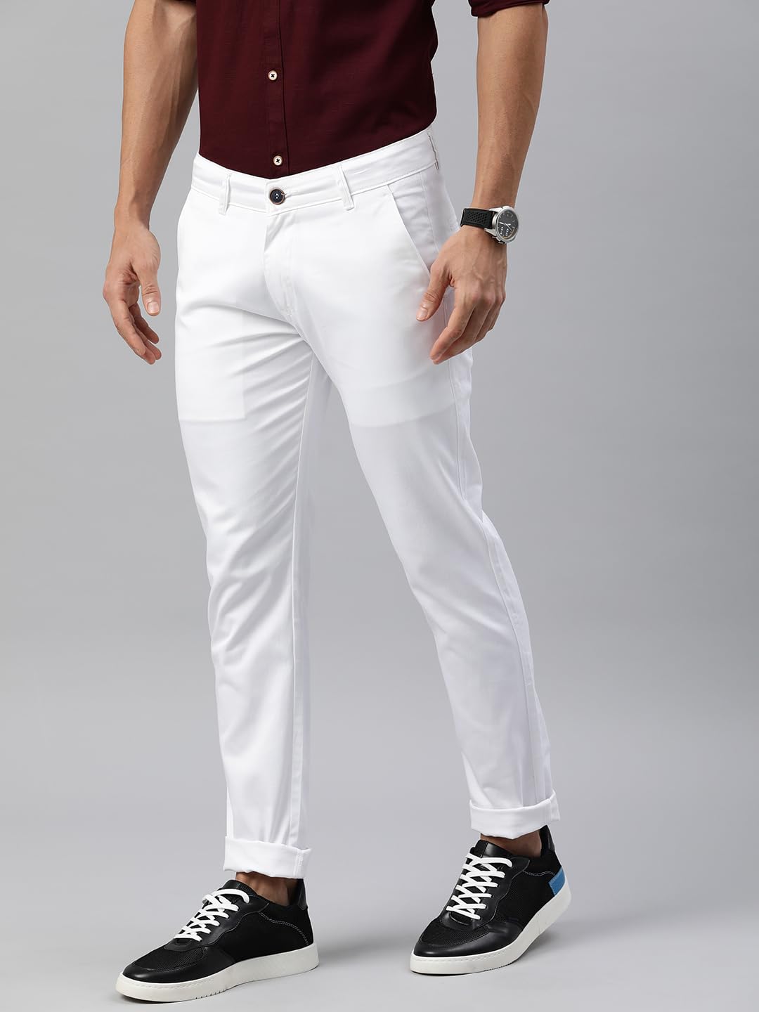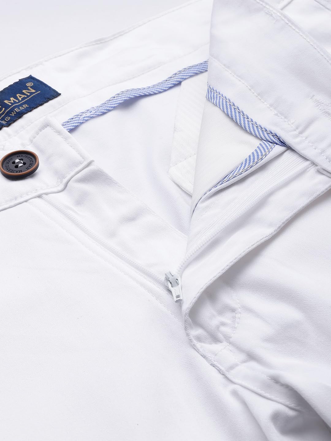 Majestic Man Slim Fit Cotton Blend Casual Mid Rise Trousers for Men (32, Milky White)