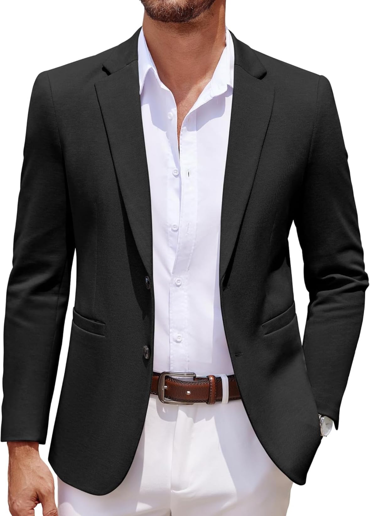 Mens Suit Jackets Casual Two Button Slim Fit Single Breasted Blazers Suit Separates Coat Sport Coats With Pockets For Wedding. Lycra Febric (In, Numeric, 34, Regular, 34, Black)