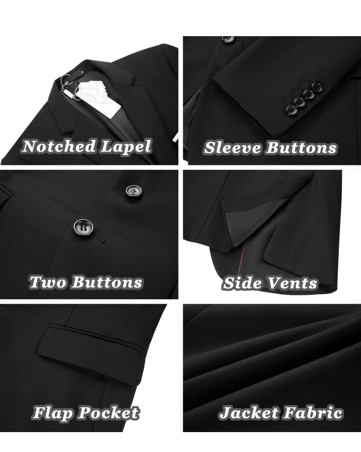 - Stylish design :Classic Men Suit jacket, with Notch lapel,four button cuffs, two flap pockets pockets, one chest pocket, two inner pocket and two button closure.The suit jacket could be wear with dress shirt, tie or bowtie, black slim fit dress pants or skinny suit pants.If you don’t like the white label on the inside of the breast pocket, you can choose to cut it off along the line with scissors