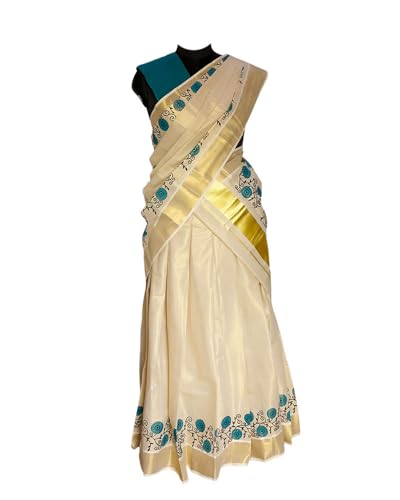 NINIKAA HOUSE OF TRADITIONS || Blue Floral Print Kerala Tissue Dhavani/Half Saree Set || FOR WOMENS & GIRLS.