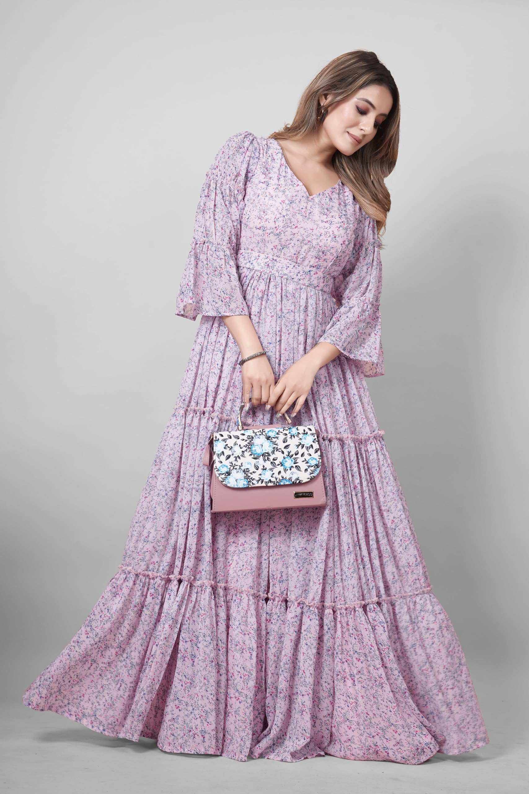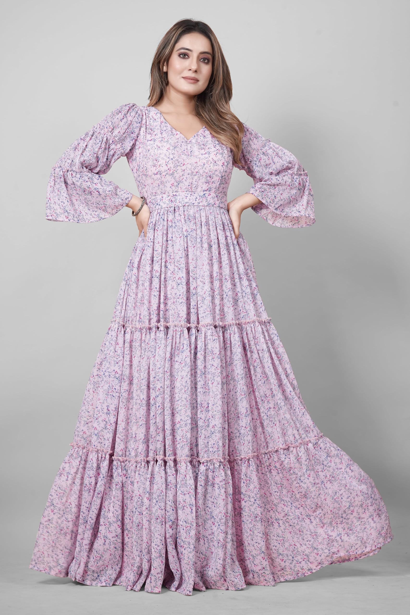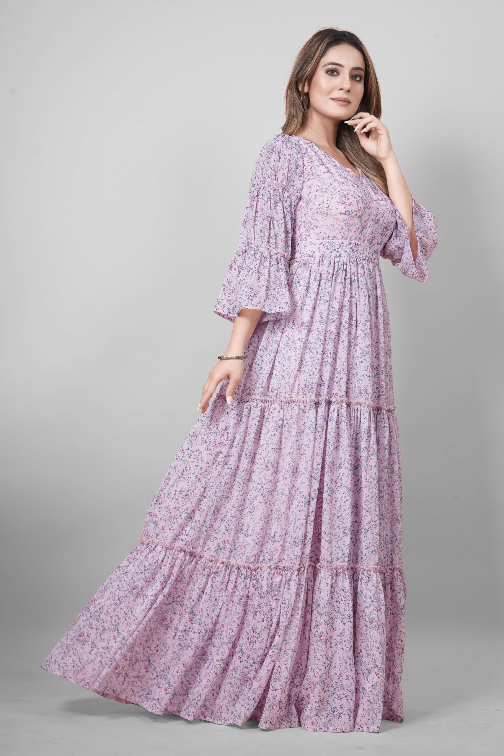 ODD BY chansi TRENDZ Women’s Purple Georgette V-Neck Flared Maxi Length Indo-Western Gown