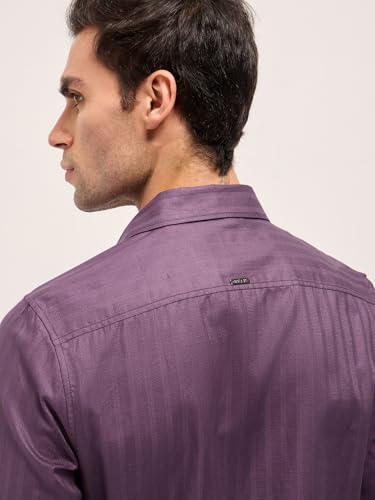THE BEAR HOUSE Men’s Tailored Fit Purple Textured Formal Shirt