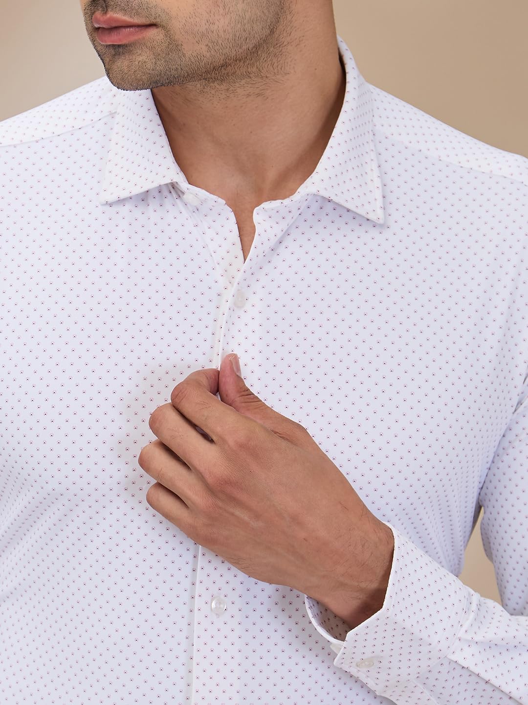 Park Avenue Men Slim Fit Print Pattern Nylon Spandex Blend Narrow Collar Full Sleeve Formal Shirt (Size: 42)-PMSX18458-R2 Light Red