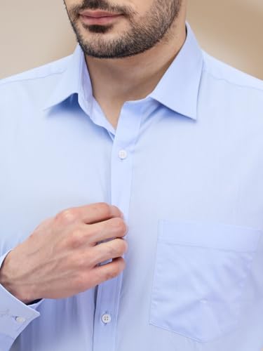 Park Avenue Men Slim Fit Solid Pattern Pure Cotton Semi Cutaway Collar Full Sleeve Formal Shirt (Size: 39)-PMSX18664-B3 Medium Blue