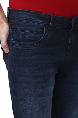 Peter England Men’s Mid Wash Stretchable Mid Rise Jeans Dark Navy, 30