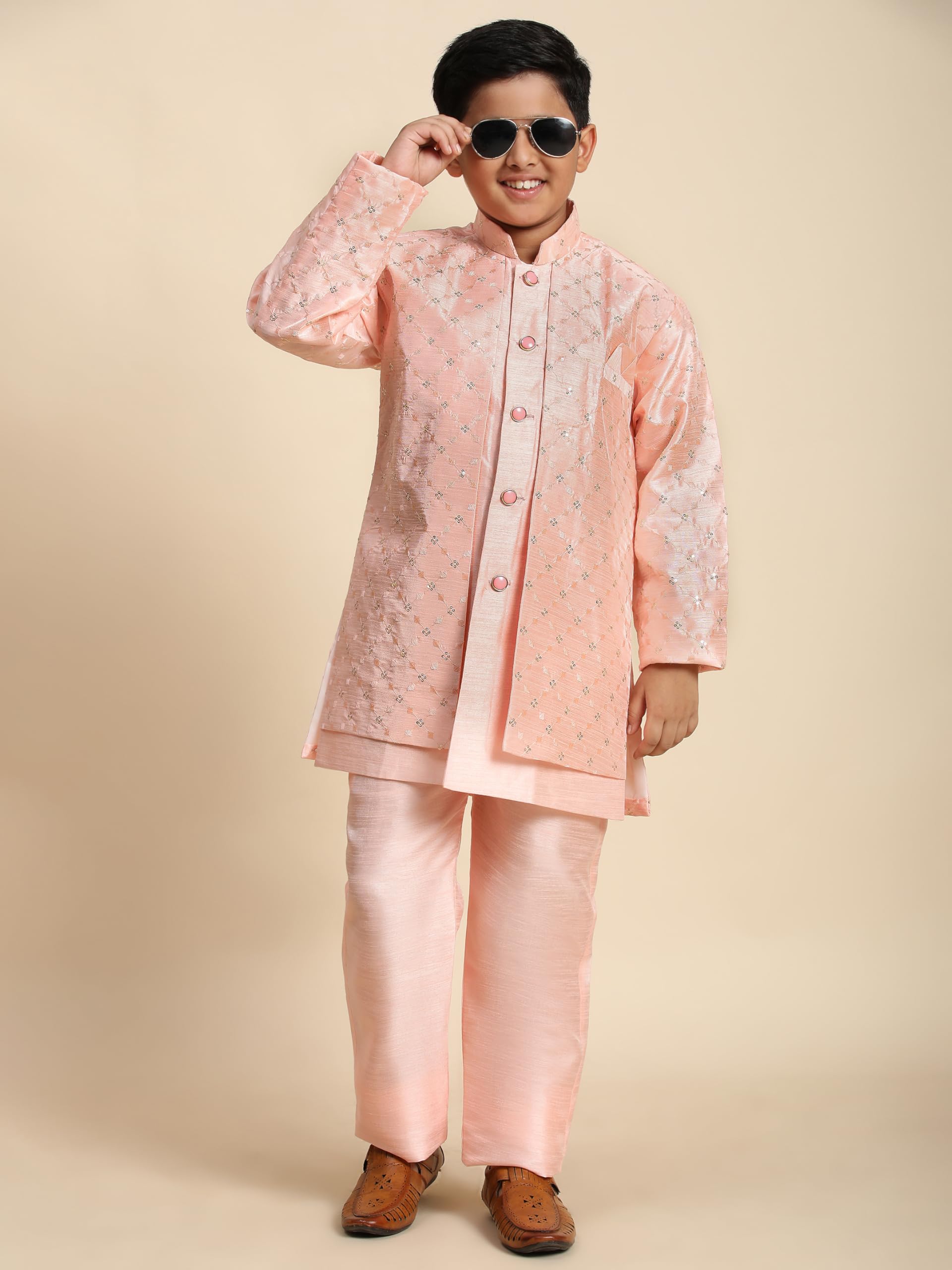 Pro-Ethic Developer Kids Indo-Western set for boys Wedding festive Outfit Sherwani Kids Traditional Outfit for Baby Boys (S-259) (5-6 Years, Pink)