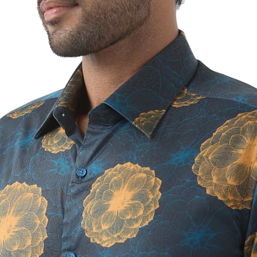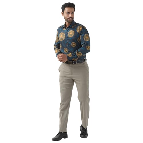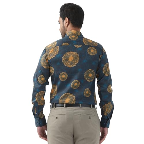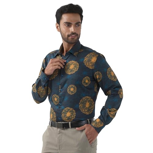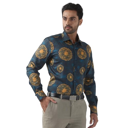 Raymond Men Regular Fit Print Pattern Pure Cotton Semi Cutaway Collar Full Sleeve Formal Shirt (Size: 39) RPSX09103-P7 Dark Petrol