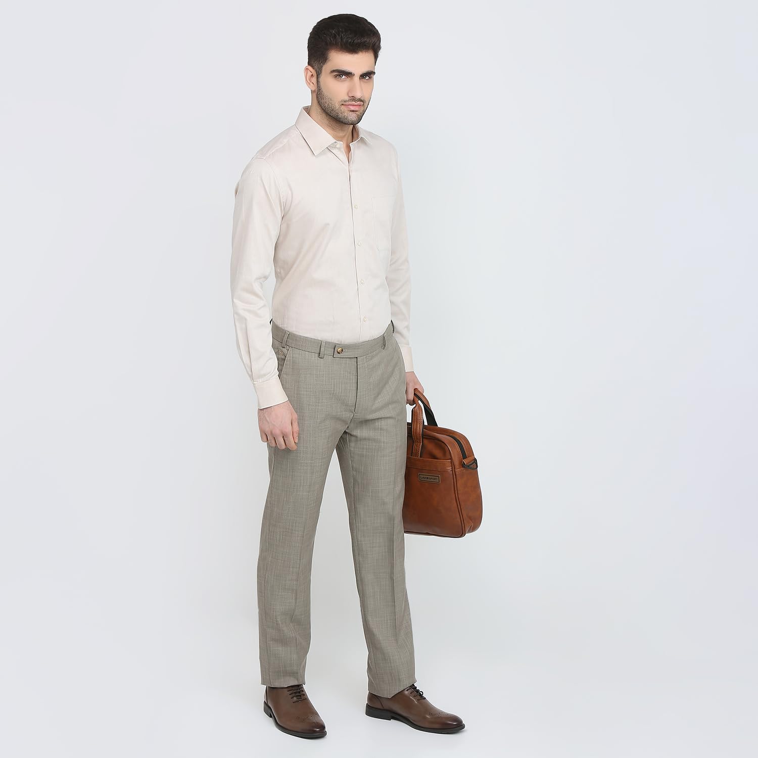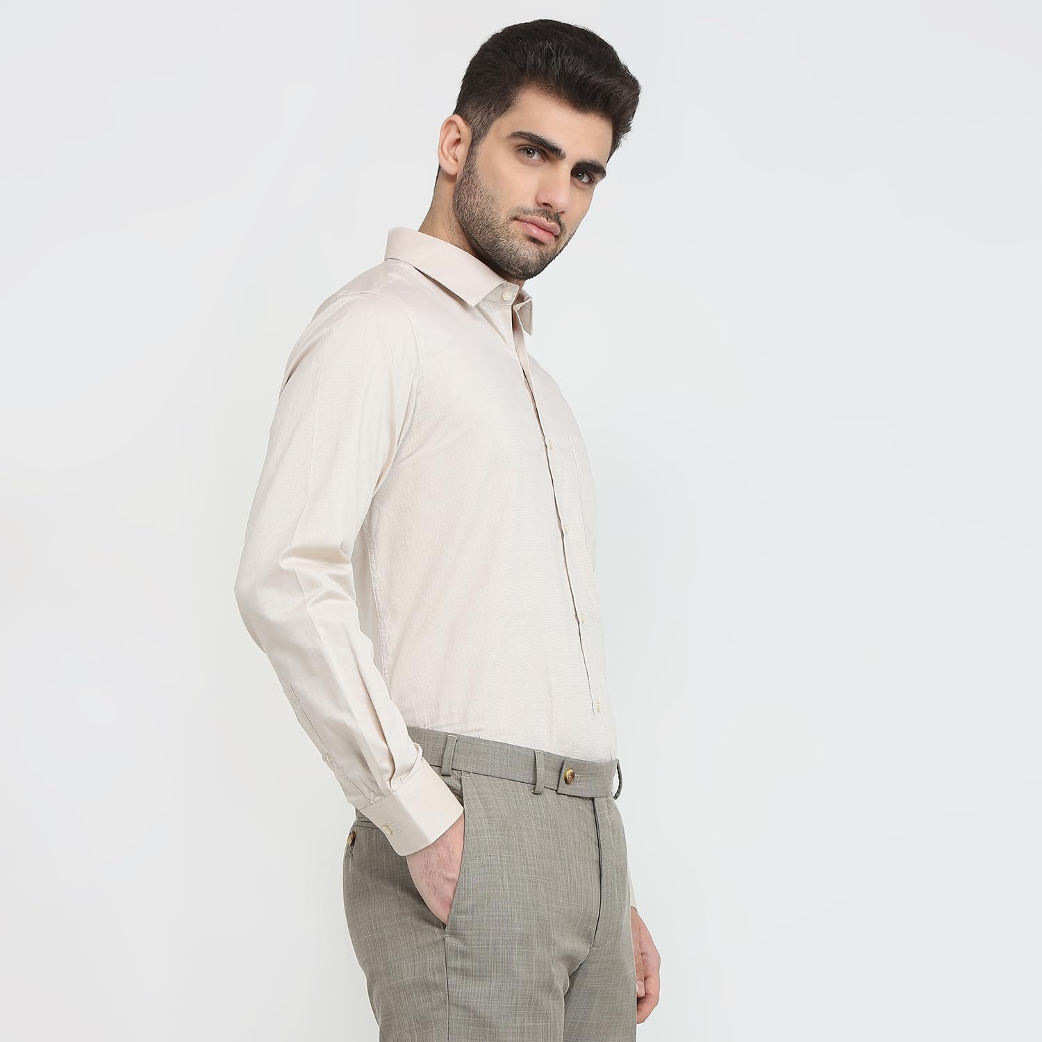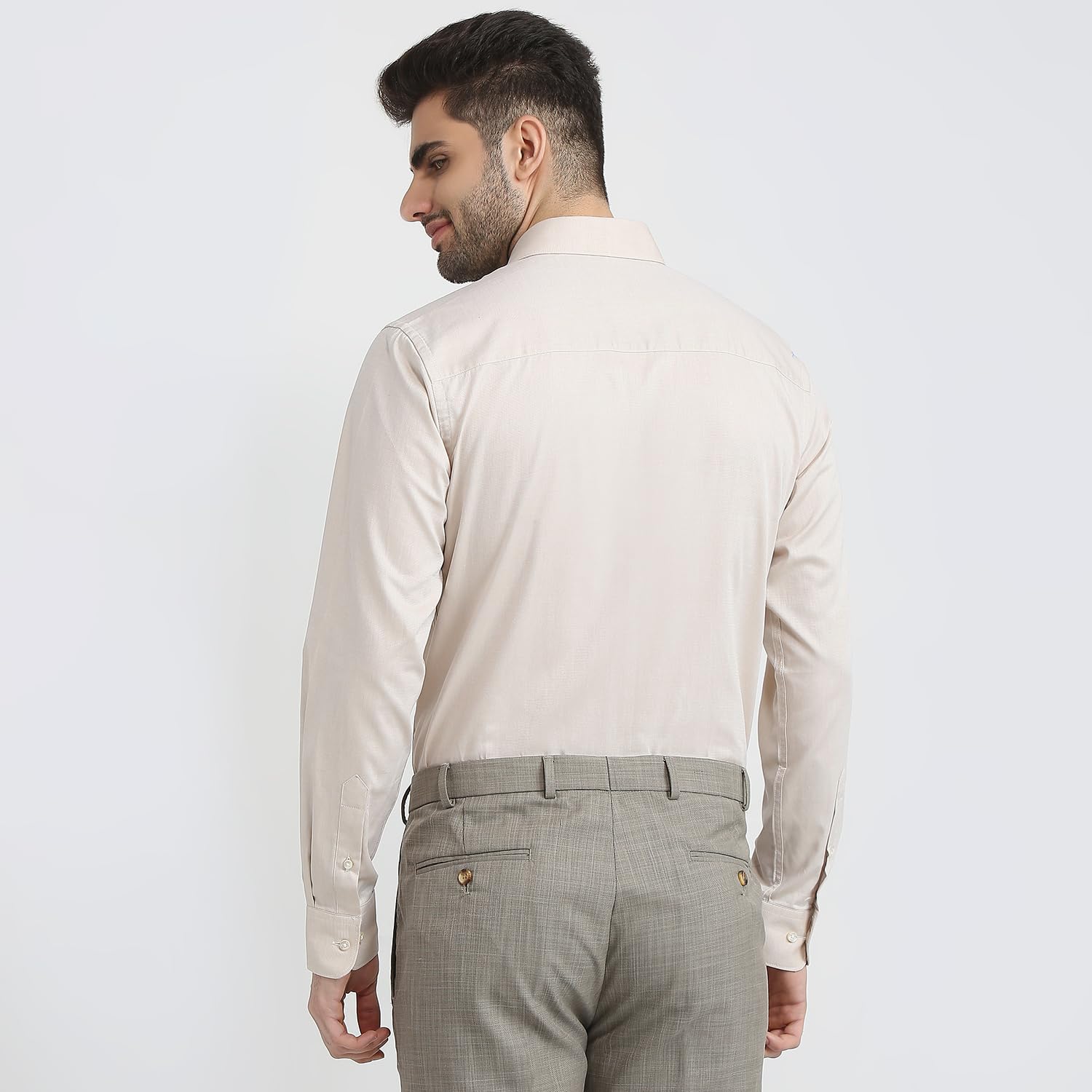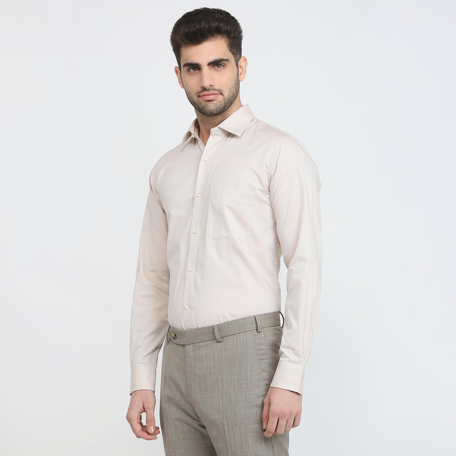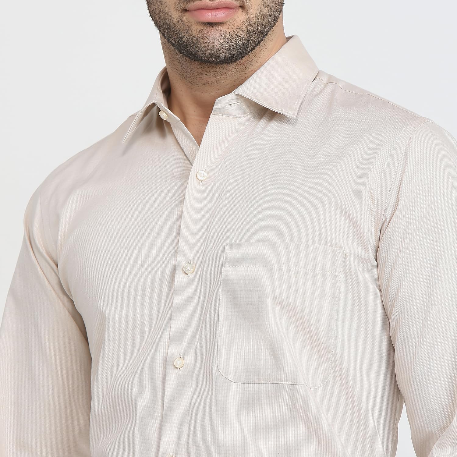 Raymond Men Regular Fit Structure Pattern Pure Cotton Semi Cutaway Collar Full Sleeve Formal Shirt (Size: 40)-RISZ00606-F5 Medium Fawn
