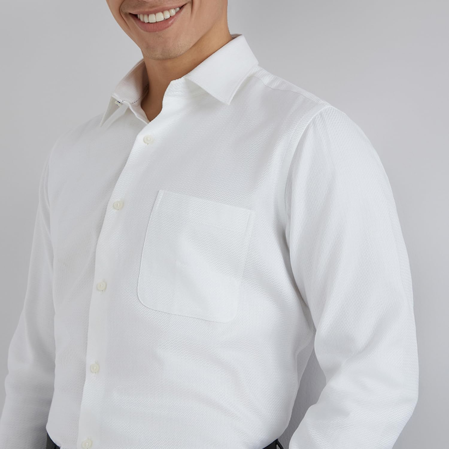 Raymond Men Regular Fit Structure Pattern Pure Cotton Semi Cutaway Collar Full Sleeve Formal Shirt
