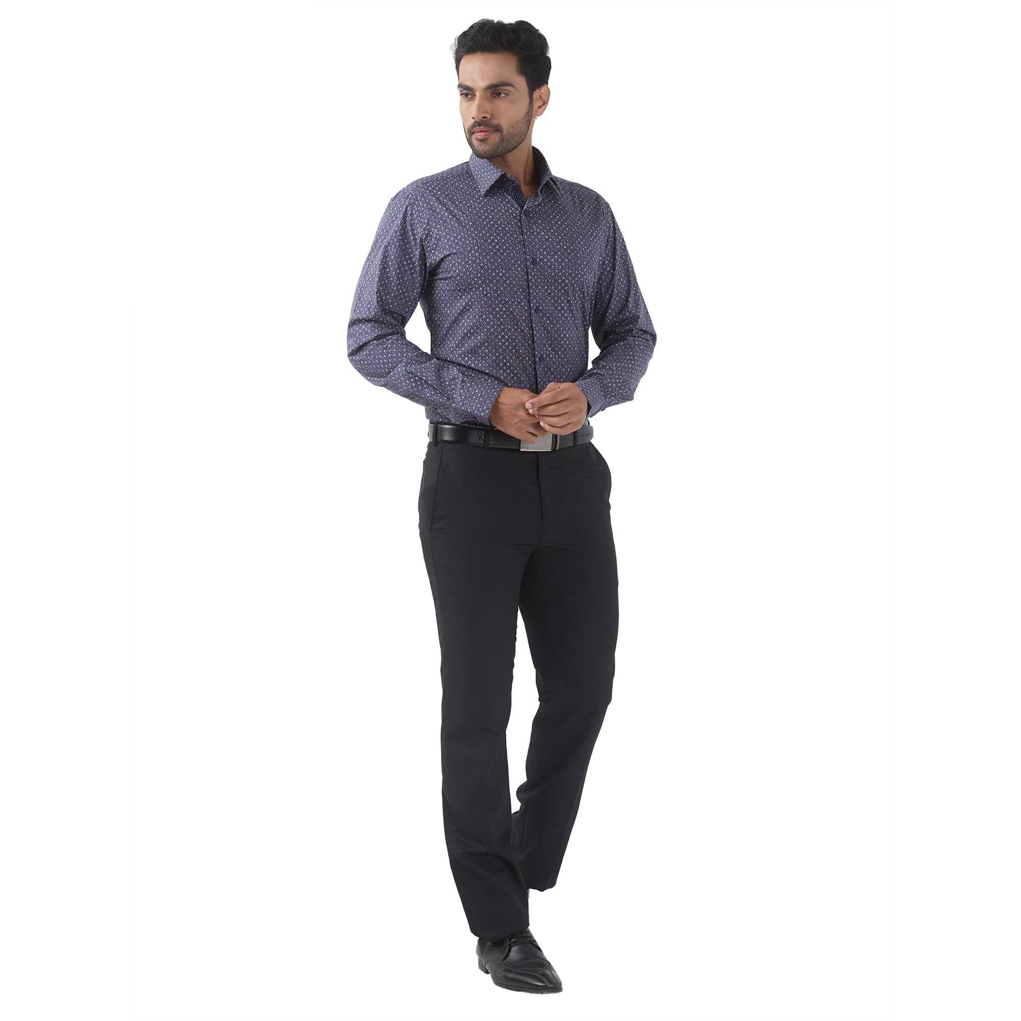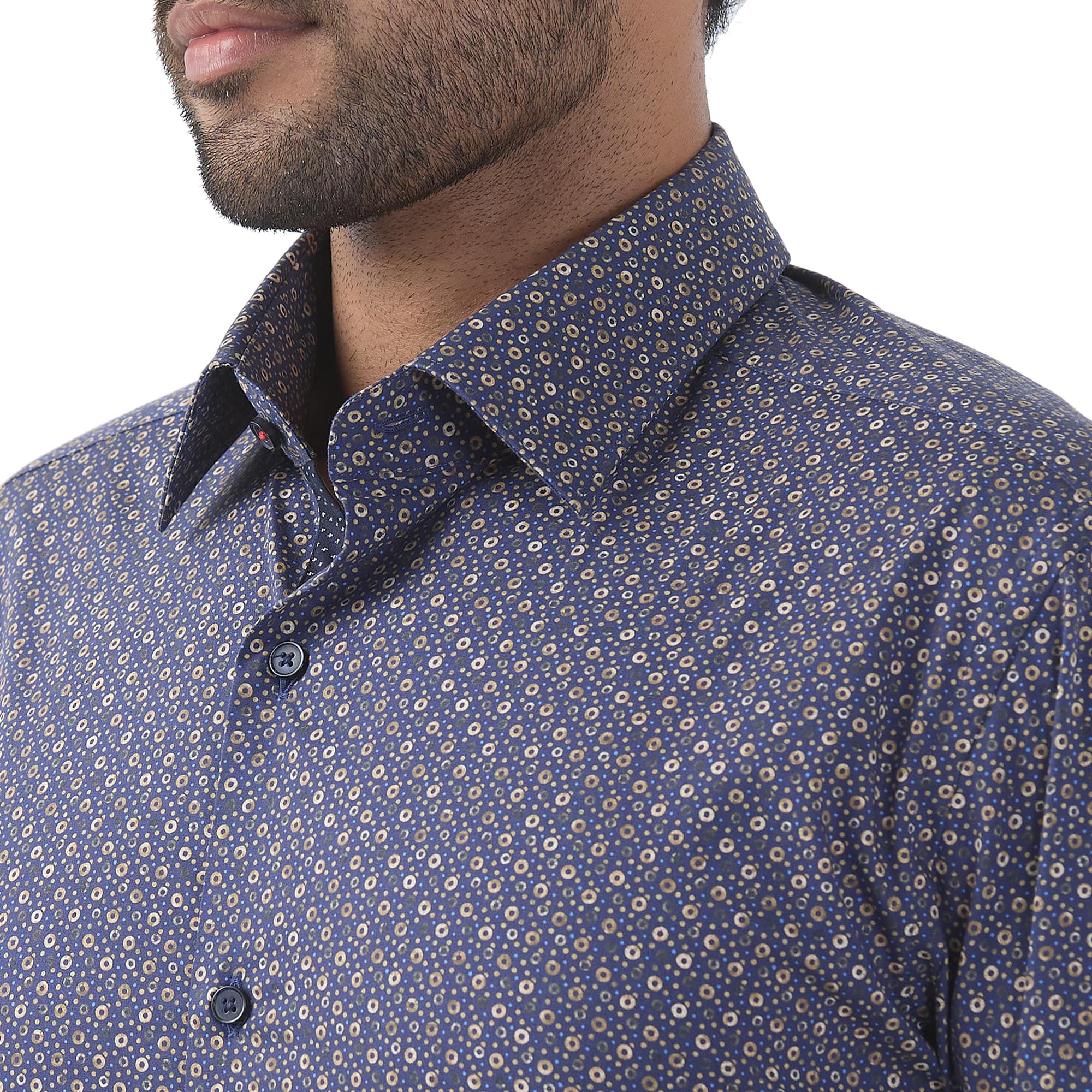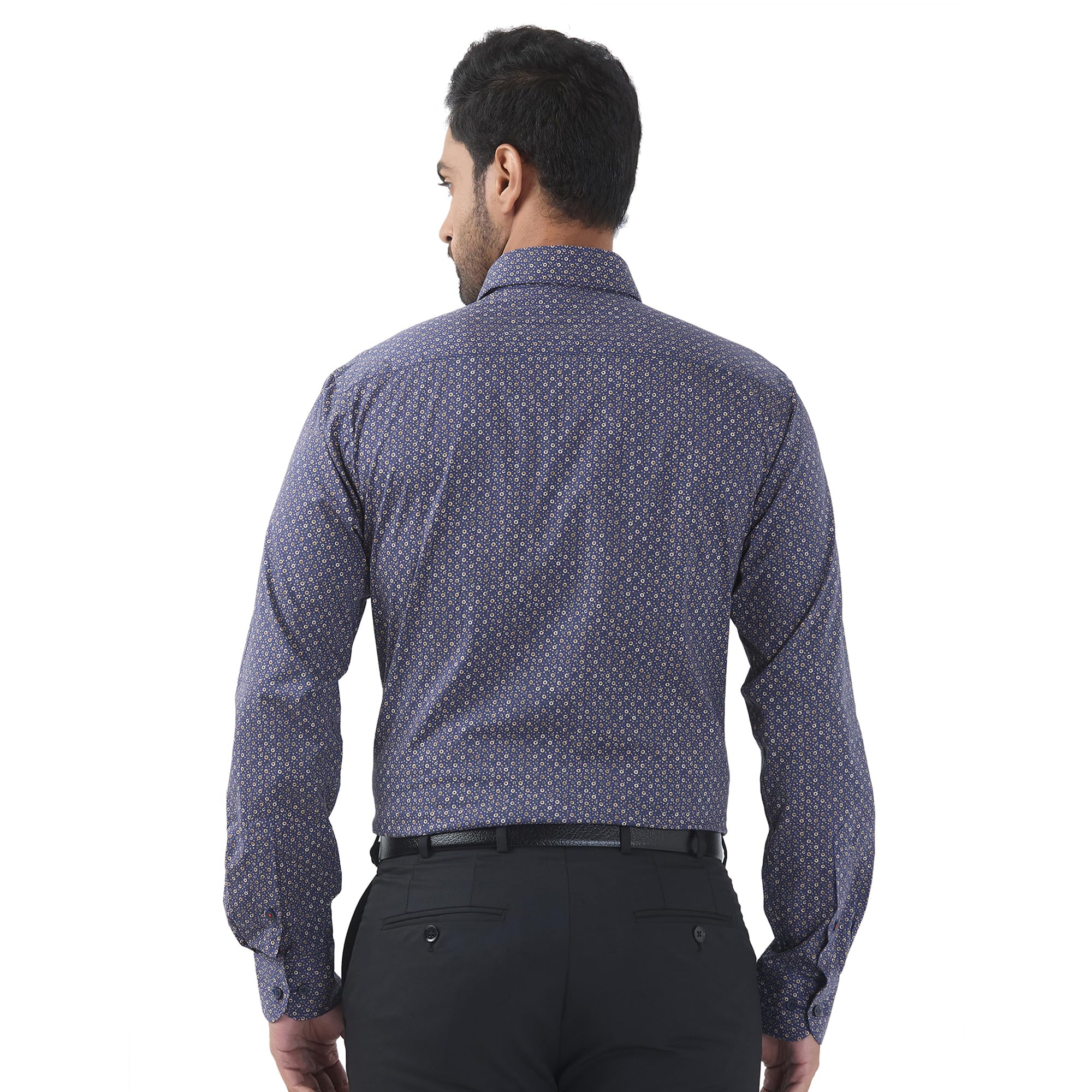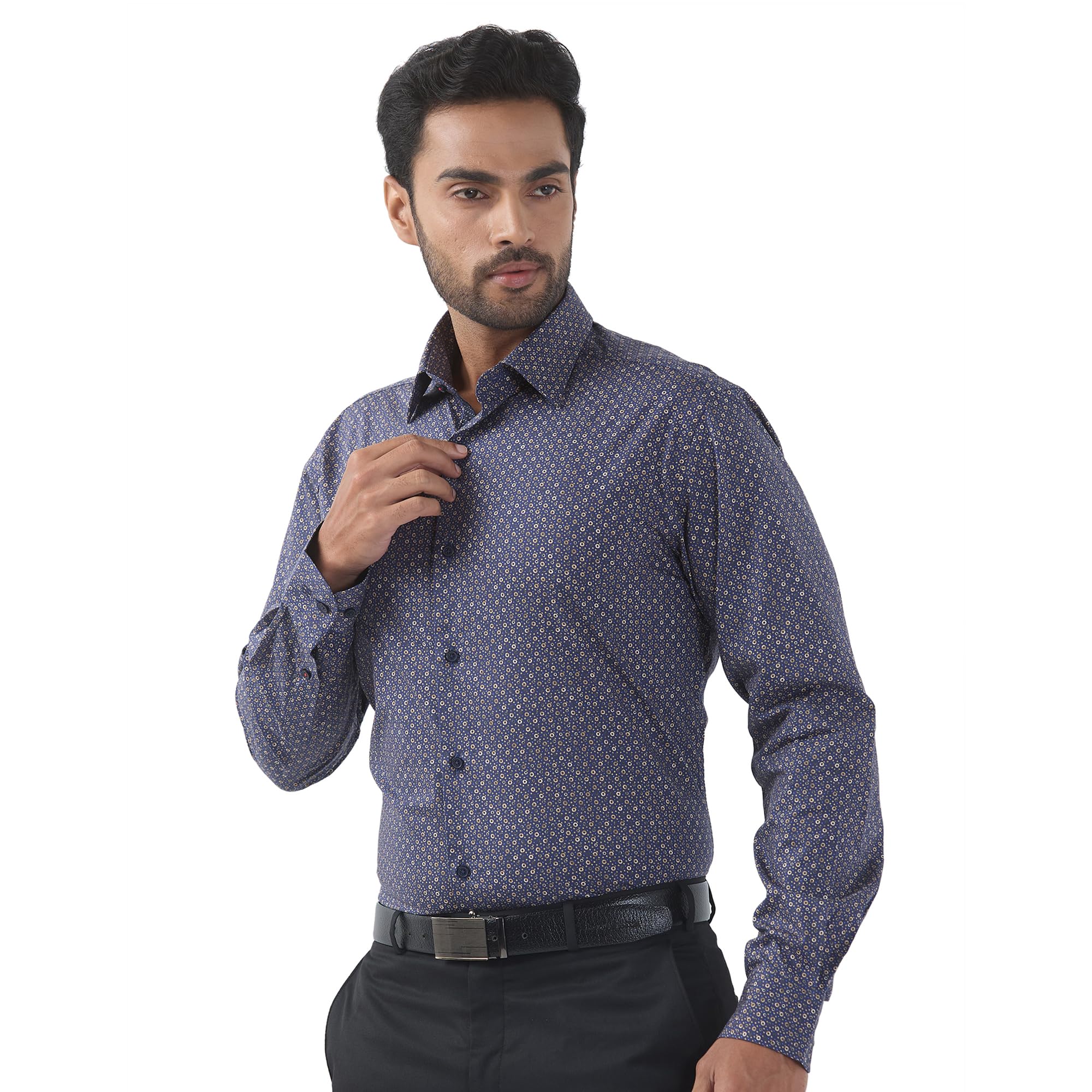Raymond Men Slim Fit Print Pattern Cotton Blend Semi Cutaway Collar Full Sleeve Formal Shirt (Size: 44) RMSU13081-B6 Dark Blue