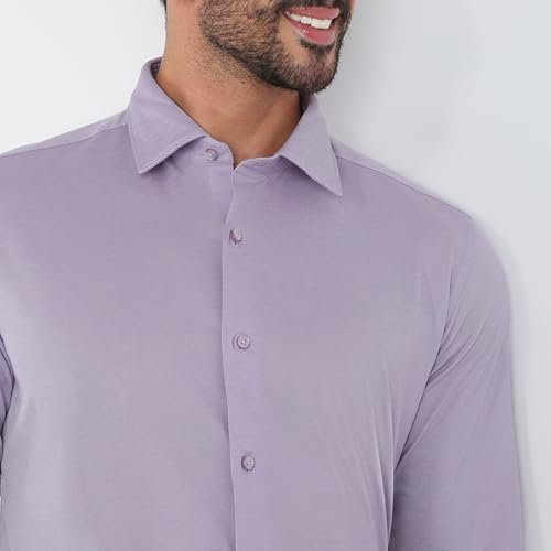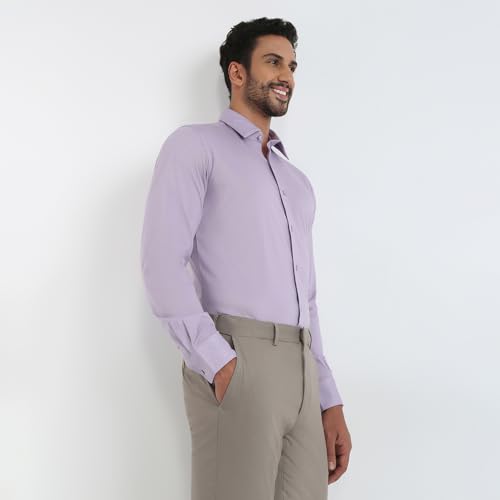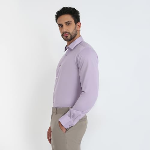 Raymond Men Slim Fit Solid Pattern Cotton Polyester Blend Semicutaway Collar Full Sleeve Formal Shirt (Size: 38)-RMSN13422-V3 Medium Violet