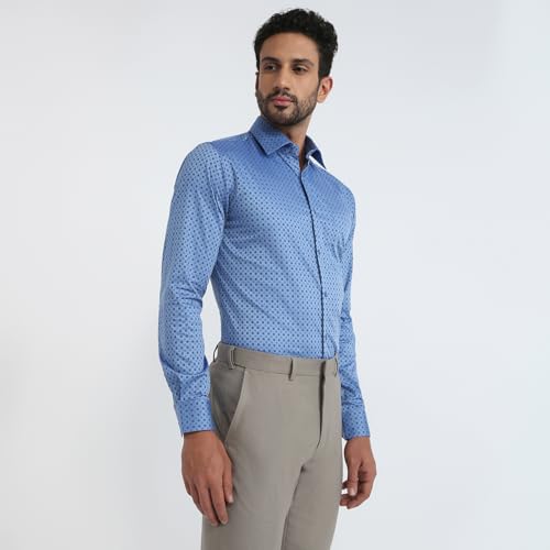 Raymond Men Slim Fit Structure Pattern Pure Cotton Semicutaway Collar Full Sleeve Formal Shirt (Size: 39)-RMSN13376-B6 Dark Blue