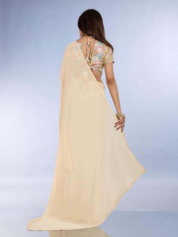 Rekha Maniyar Women’s Beige Poly Chiffon Solid Saree With Embroidered Blouse With Unstitched Blouse Piece (KHAJANA_BEIGE)