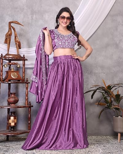 - 👗 Lehenga 👗 Fabric :- Chinon Silk Work. :- Solid Size :- Free size ( fully stitched )