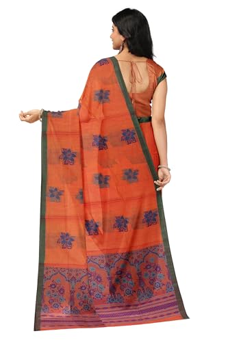 SENSAN Women’s Fancy Coimbatore Cotton Saree with Blouse Piece [SKU:5113] (Yellow×Red)