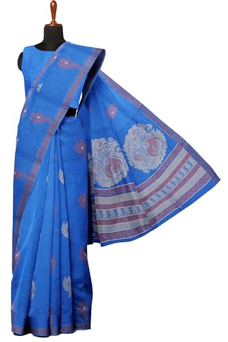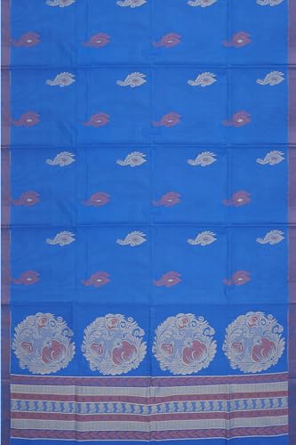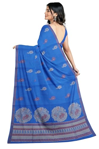 SENSAN Women’s Fancy Coimbatore Cotton Saree with Blouse Piece [SKU:5177] (Dark Blue)
