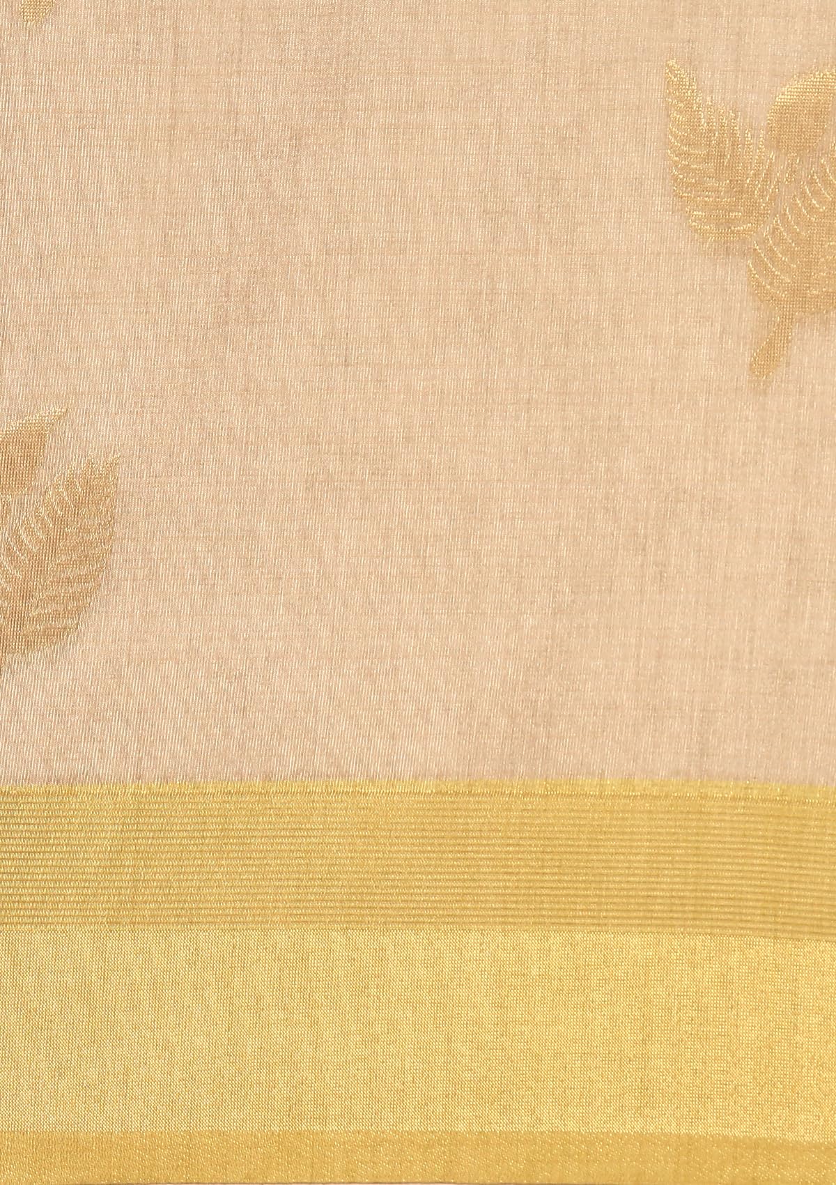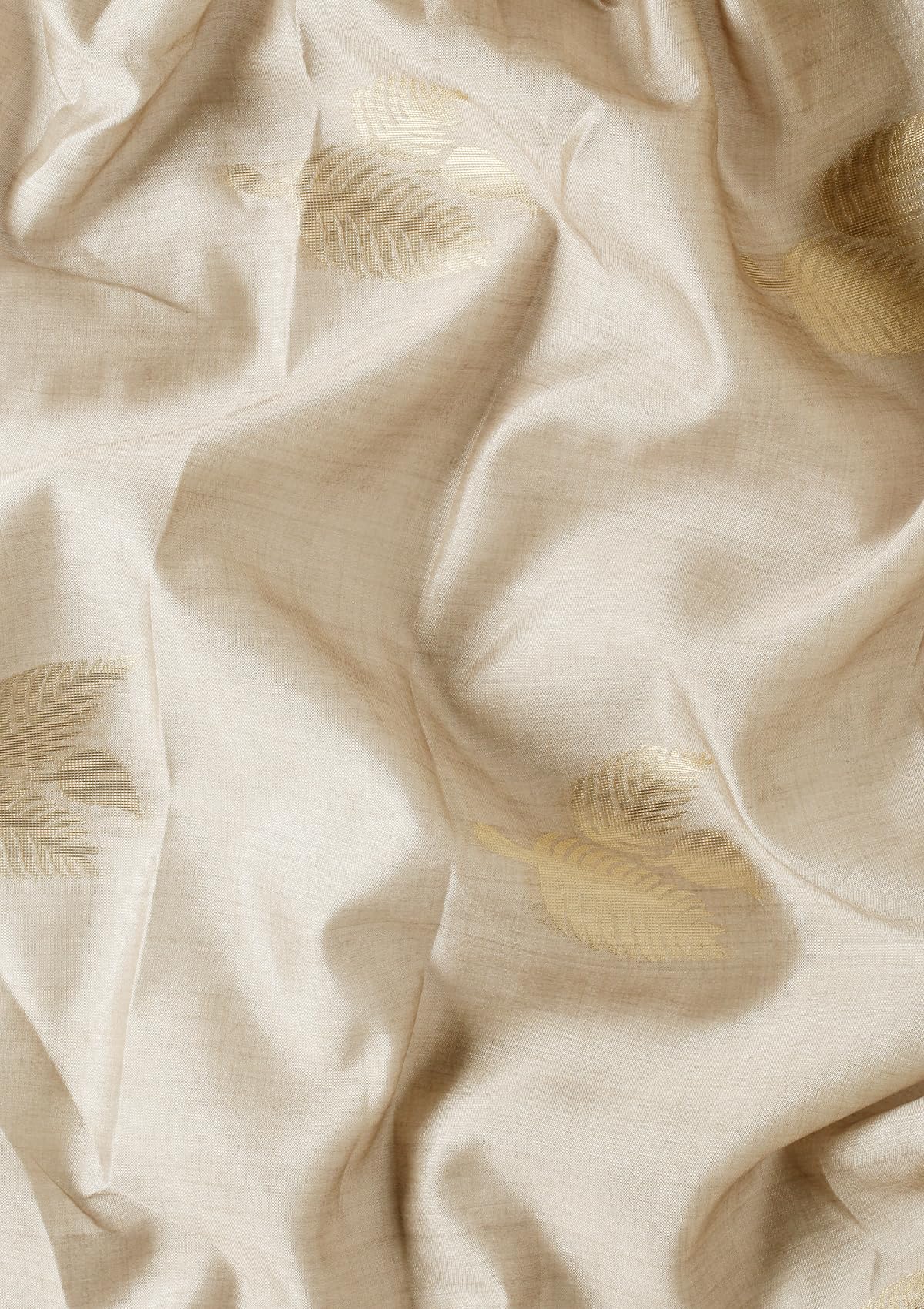 - Soft cream polyester-blended tussar fabric for a light, graceful drape