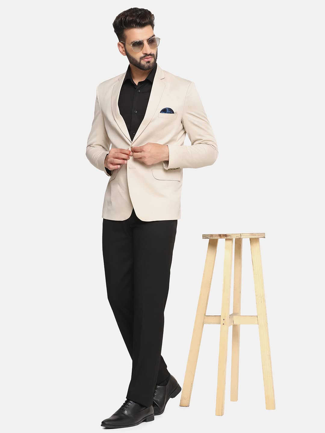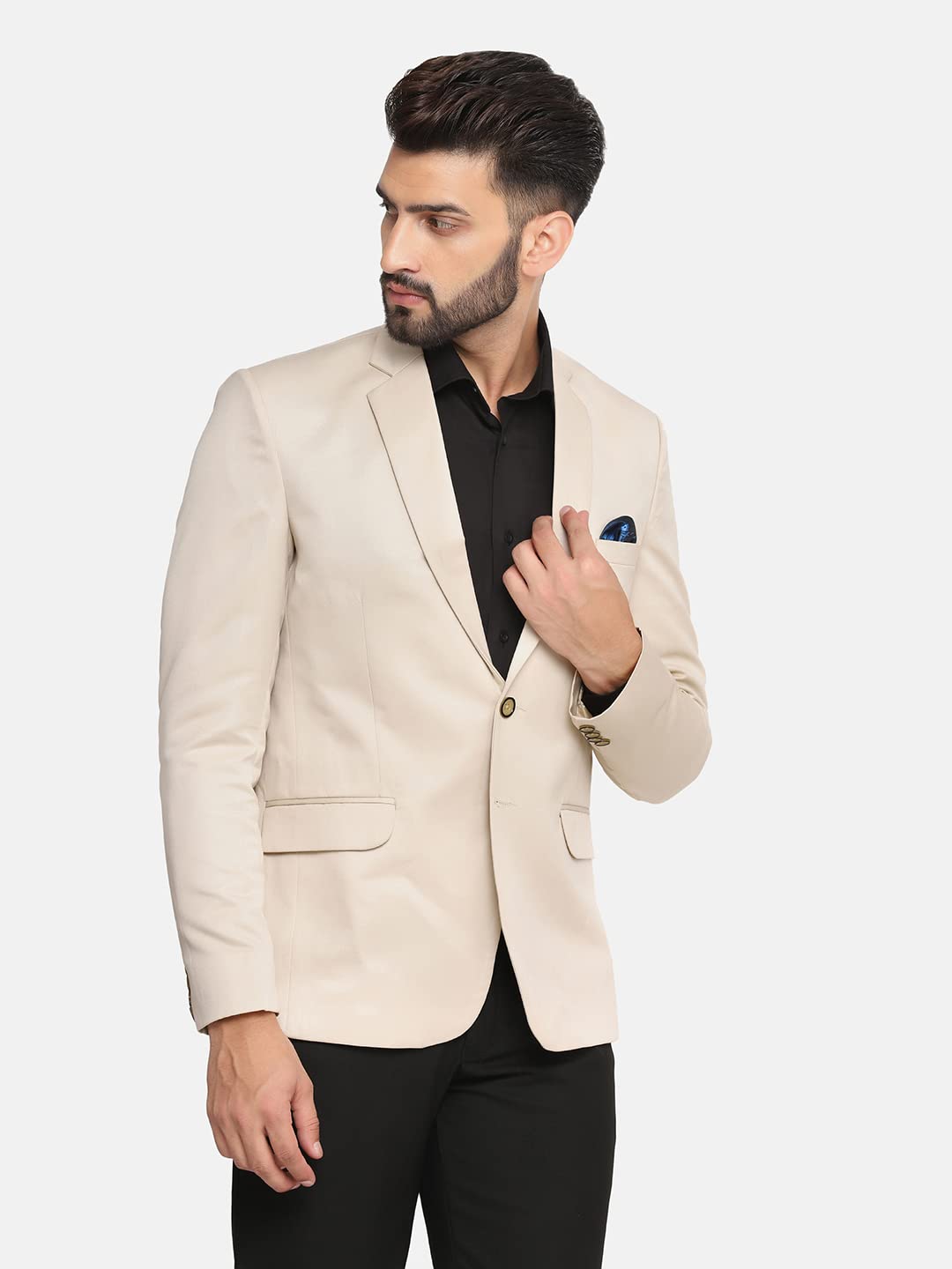 TAHVO Men’s Single Breasted Regular Fit Blazer for Occasion, Weddings, Party (Beige, 44)