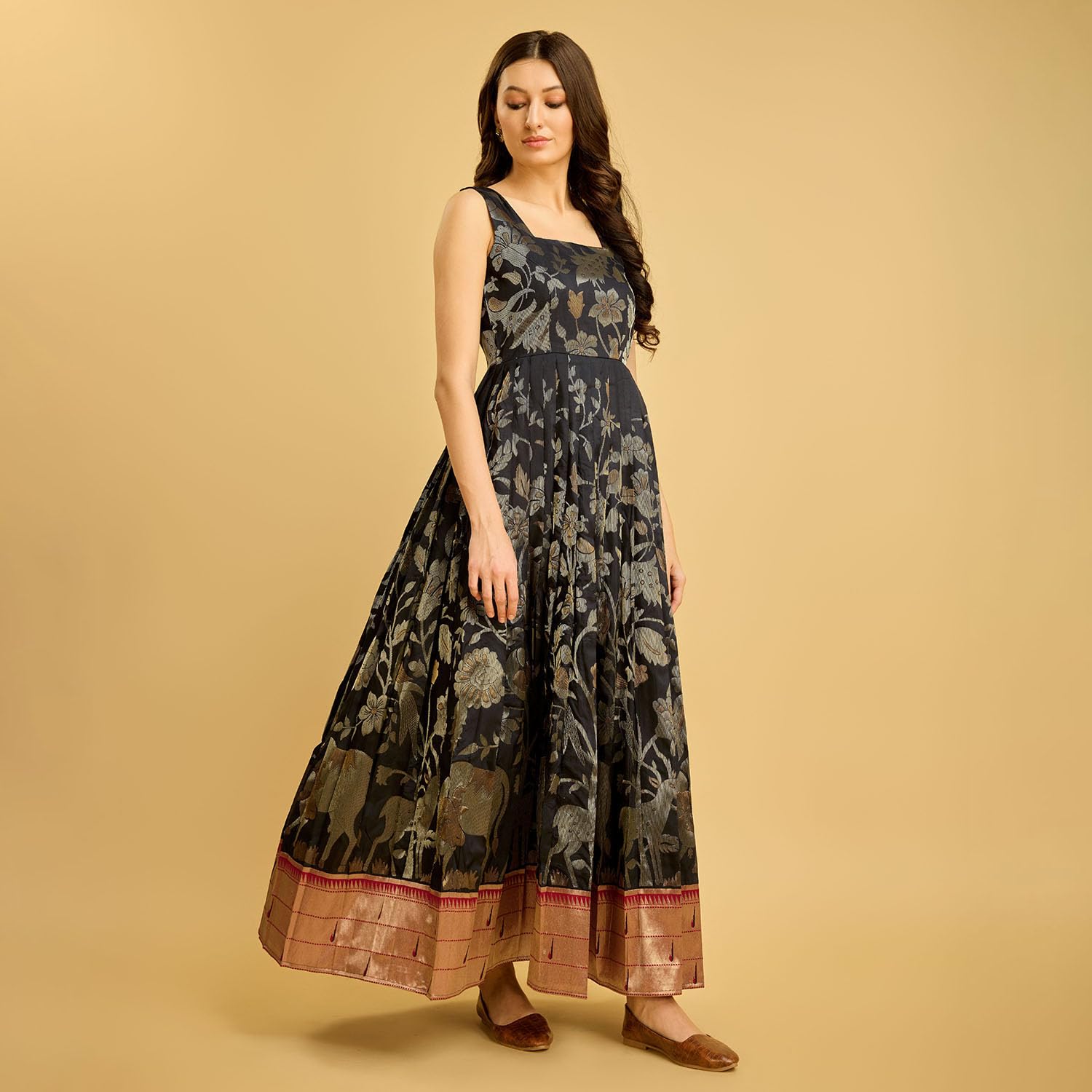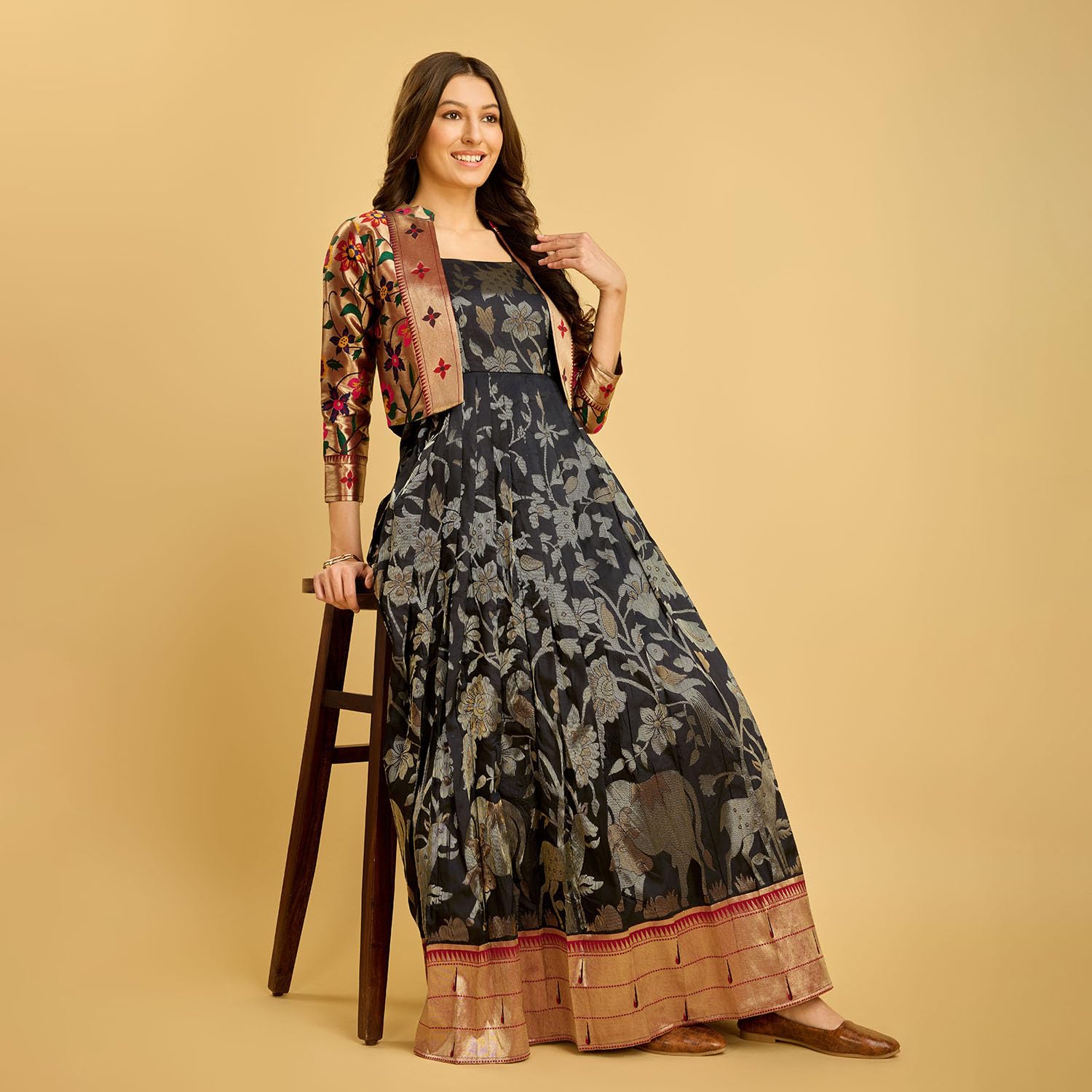 TASARIKA Women Soft Silk Banarasi Weaving Maxi Traditional Purple Gown 1012_S
