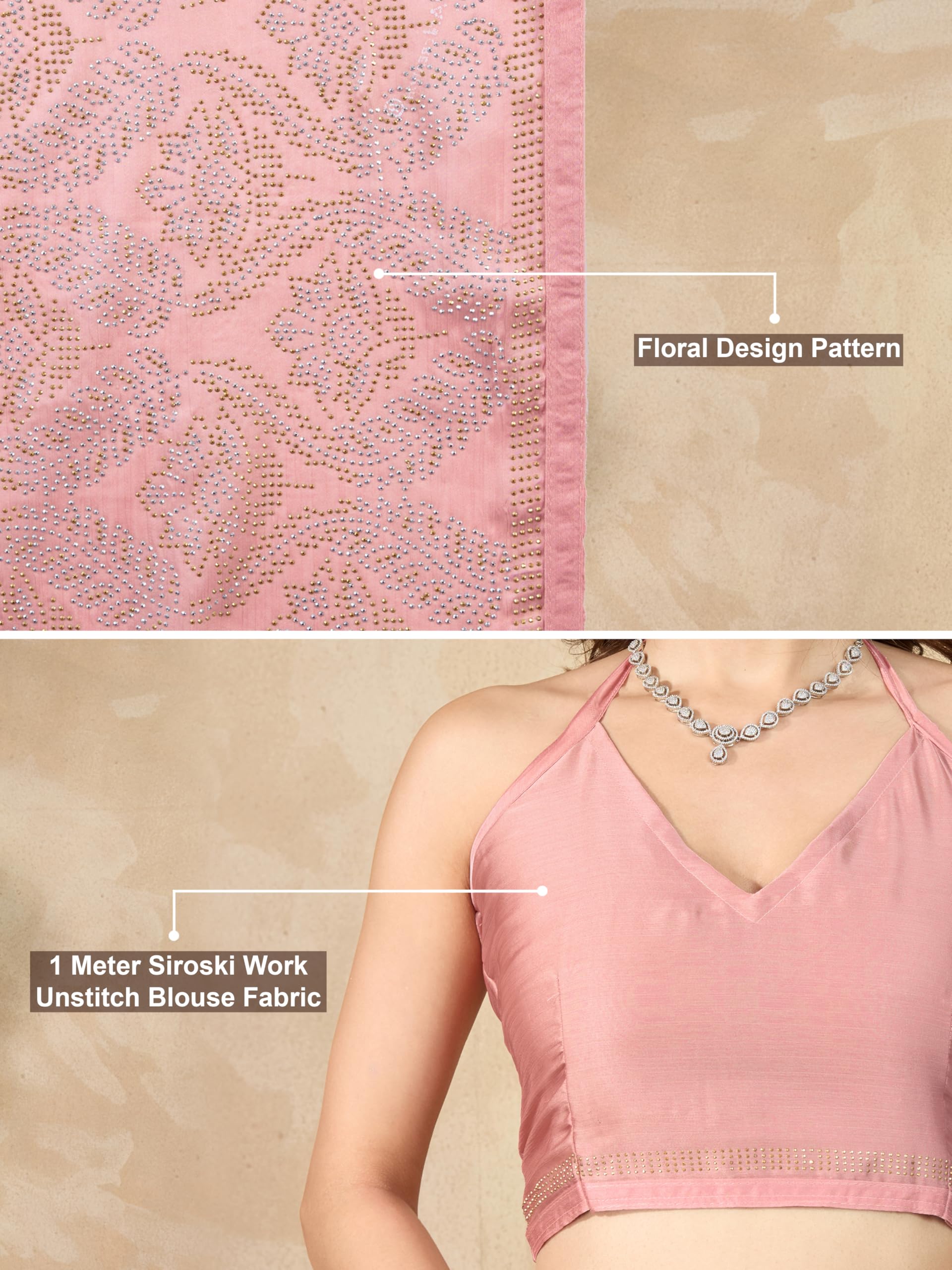 - Package Contents: 1 Saree with Unstitched Blouse Piece