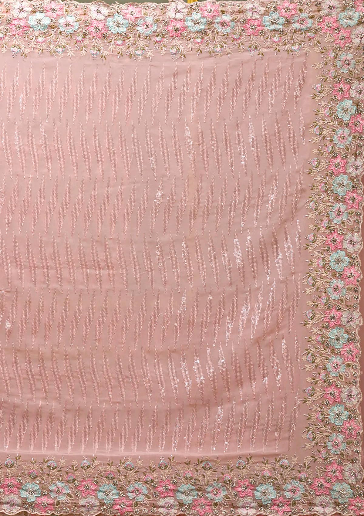 TRENDMALLS Women’s Georgette Embroidery Sequence Work Saree With Unstitched Blouse Piece (K1100-Pink)
