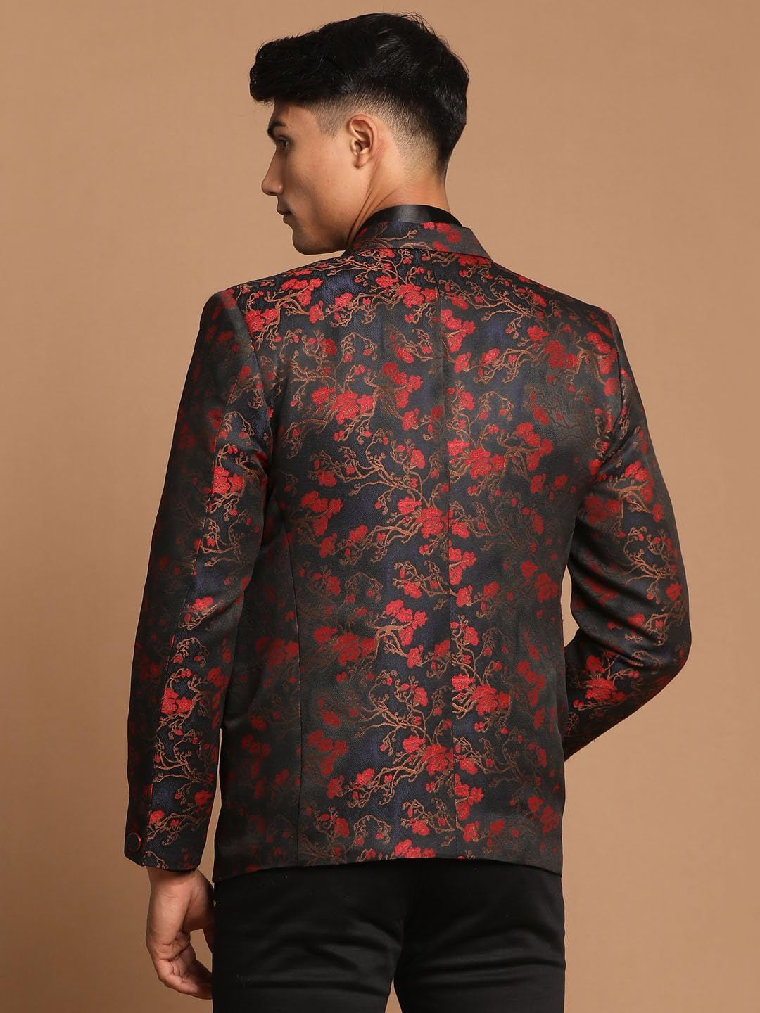 VASTRAMAY Self Woven Floral Silk Blend Blazer for Men – Versatile Ethnic Wear for Weddings & Special Occasions