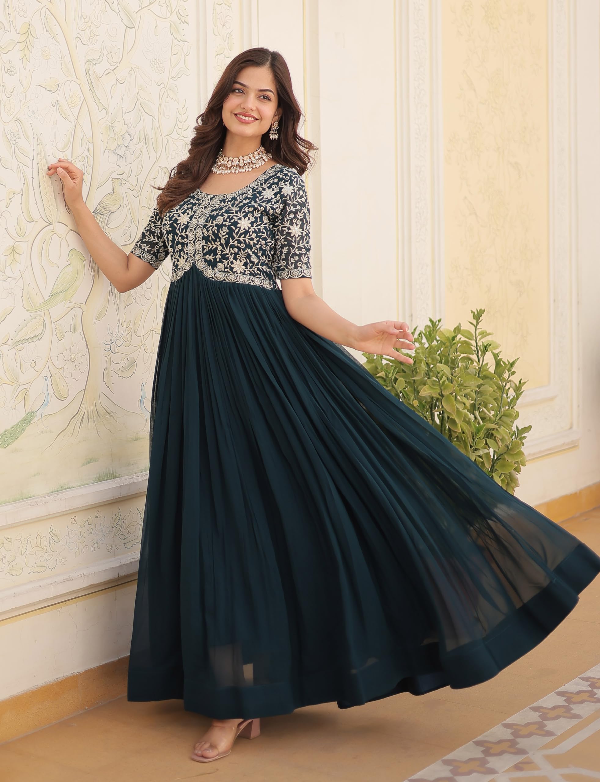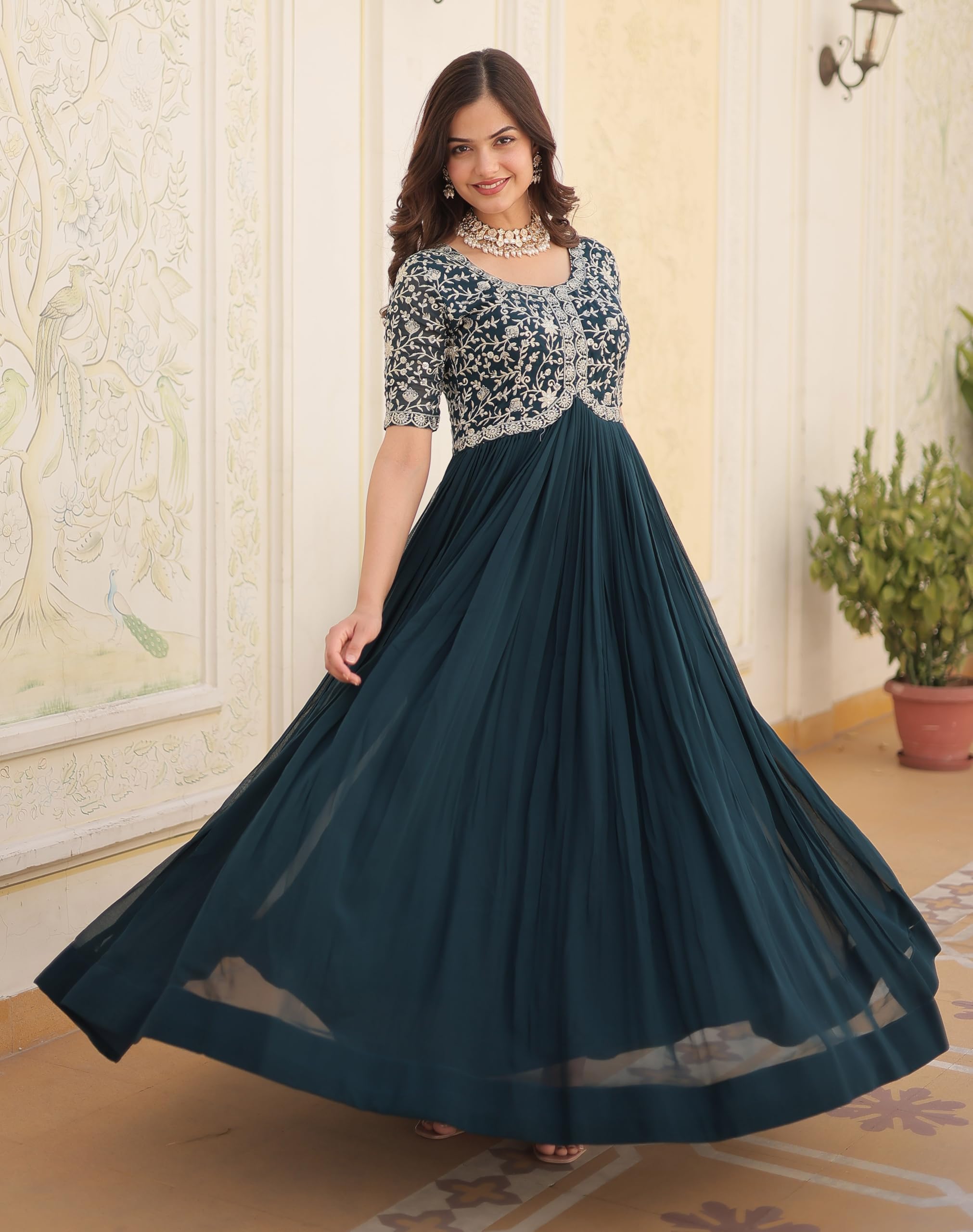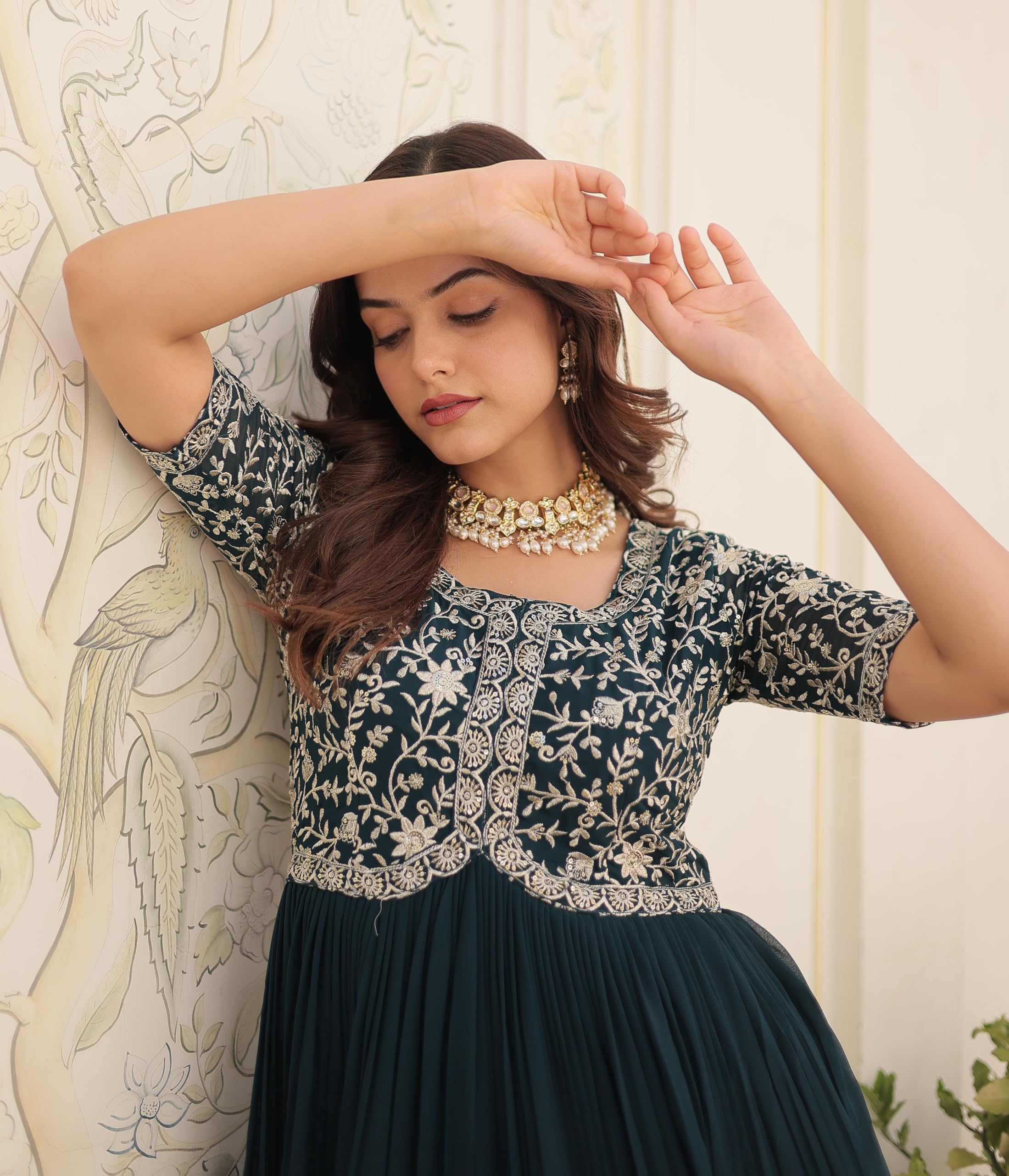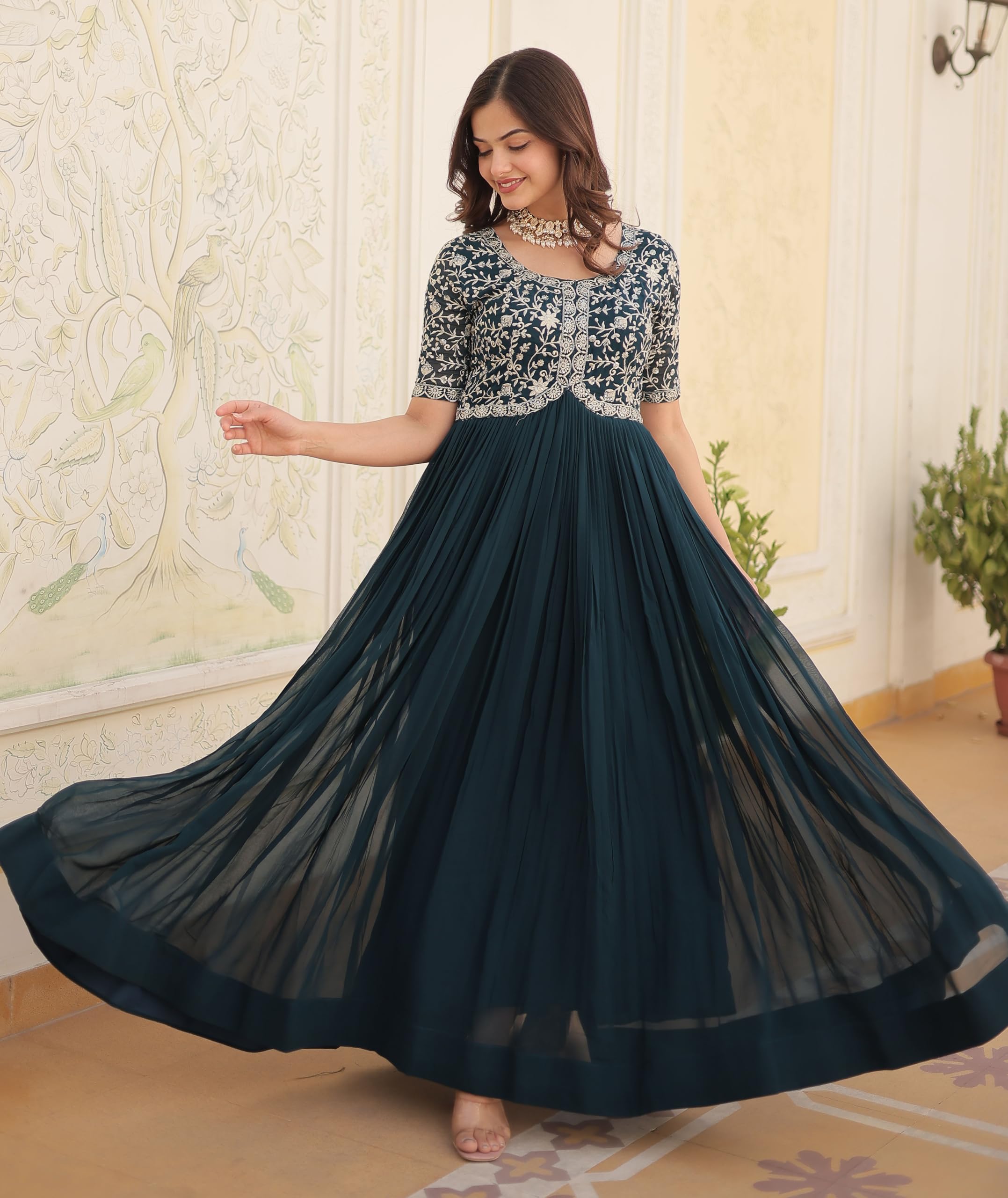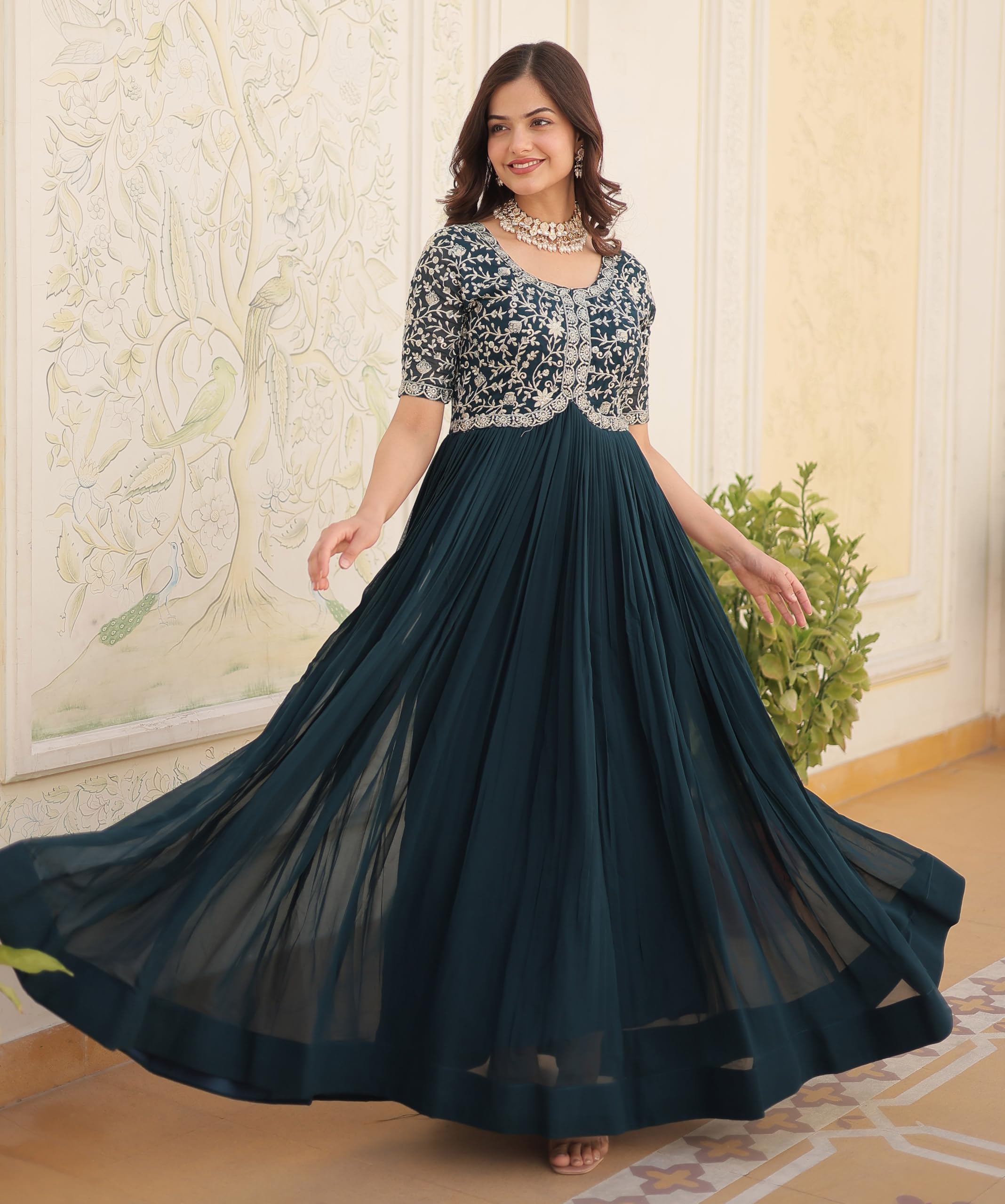 Wedani Georgette Anarkali Gown with Embroidered Top for Women (in, Alpha, XL, Regular, Turquoise)