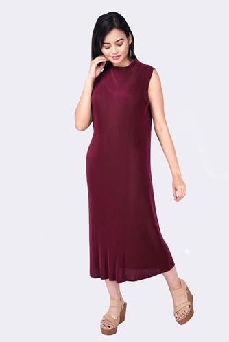 Women’s Black Pleated Midi Dress with Sequin Shrug, Round Neck, (Maroon)