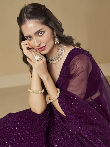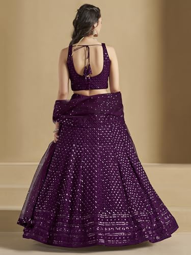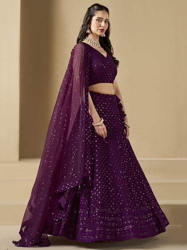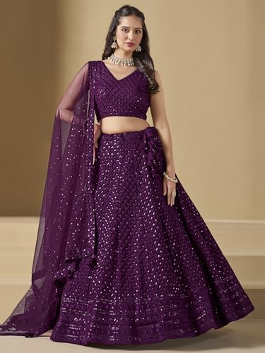Zeel Clothing Women’s Sequins Thread Embroidered Georgette Lehenga Choli With Dupatta (5124-Wine-Women-Lehenga-Choli-New; Free size) (Wine)